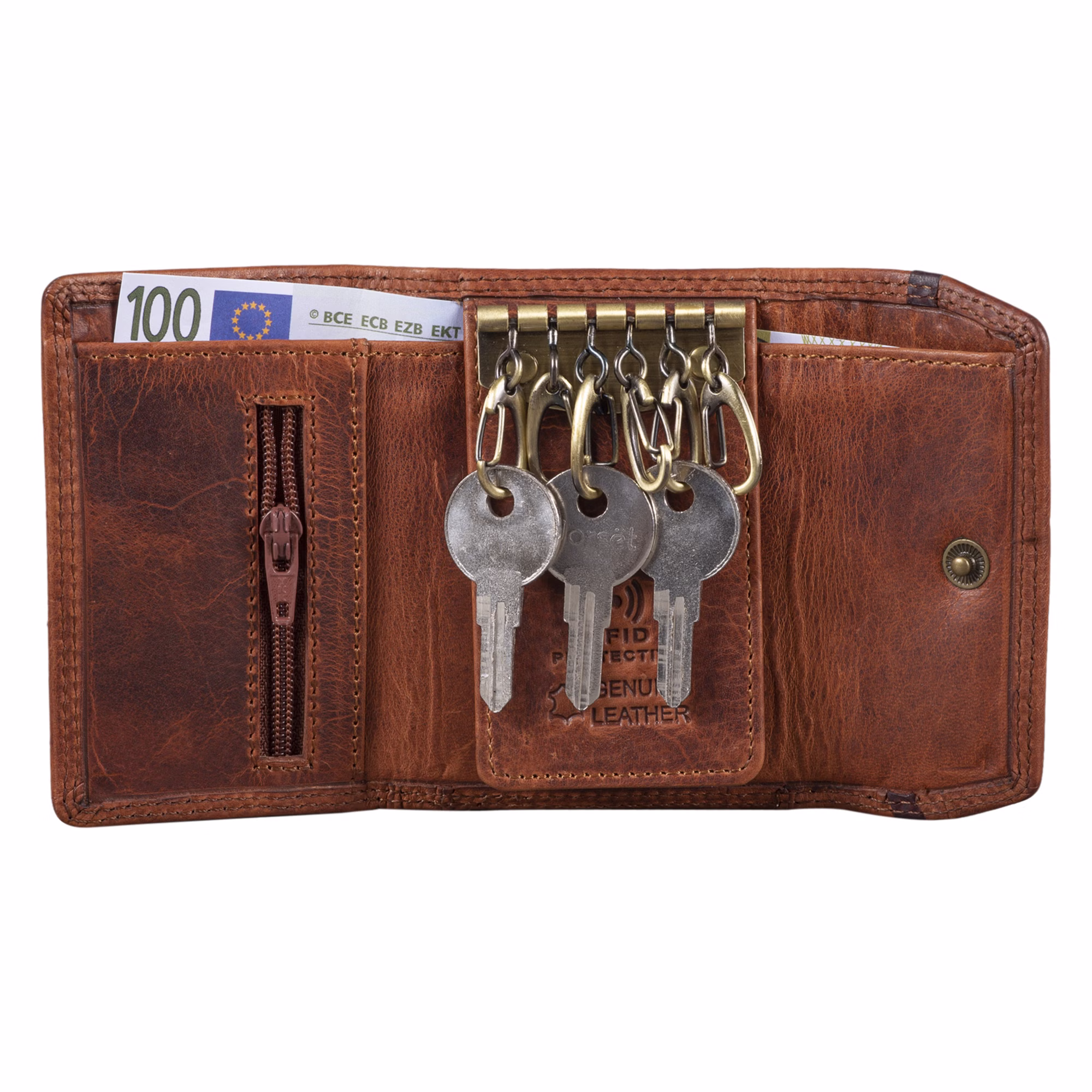 - SIMPLEMENT SPÉCIAL : Porte-clés et portefeuille en un - c'est quelque chose de spécial. Ajoutez à cela la possibilité de ranger les cartes de débit et c'est encore mieux. La protection RFID intégrée fait de notre produit en cuir véritable quelque chose de vraiment unique !