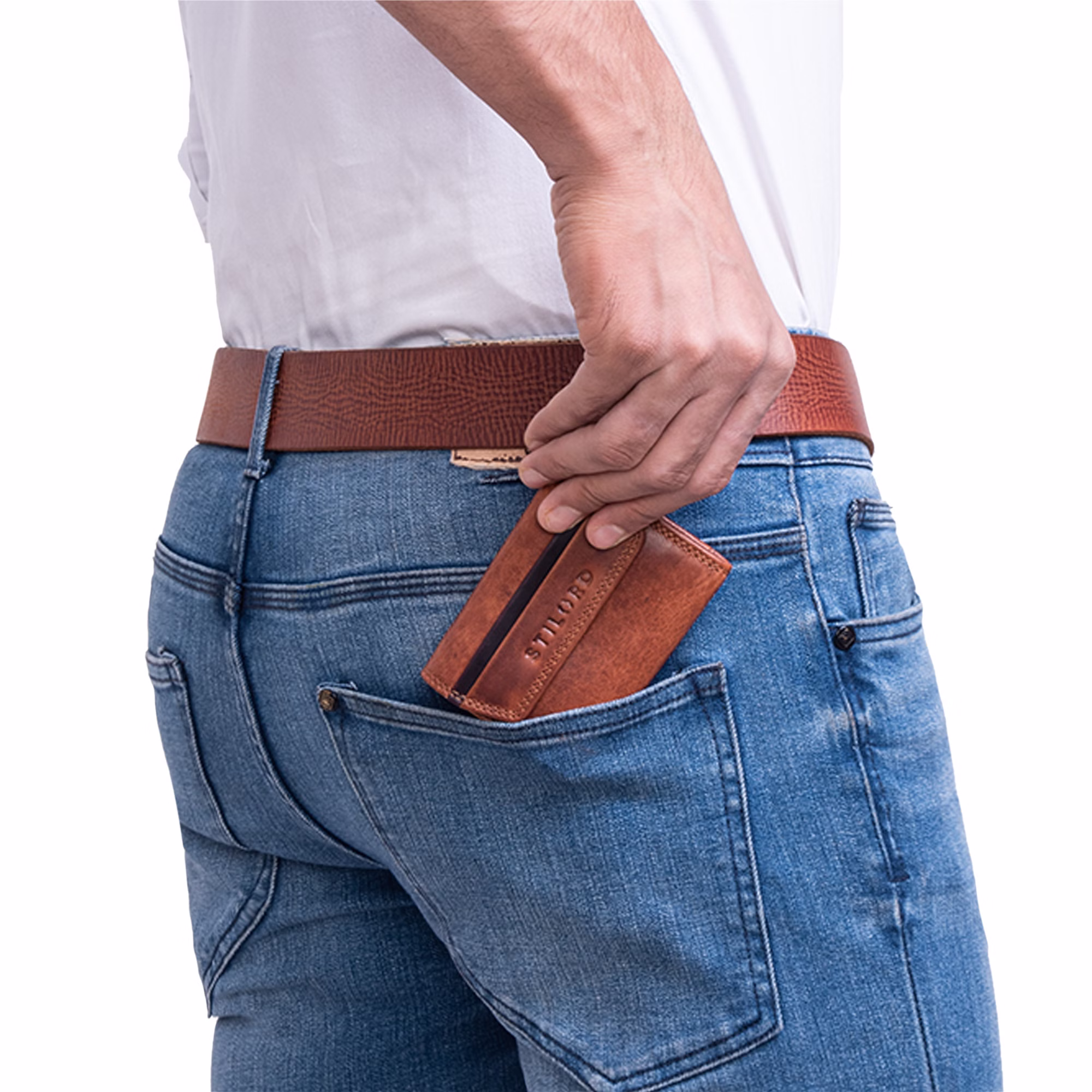 - "Bowie" 3-en-solution : petit porte-clés avec portefeuille en cuir véritable de la jeune marque STILORD pour une organisation pratique des clés, de l'argent et plus encore.