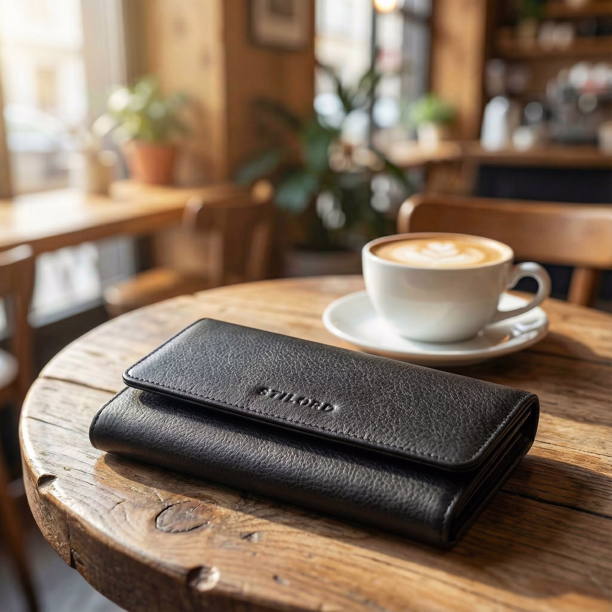 "Elara" XL Portefeuille Femme Cuir Grande Capacité à Rabat avec RFID, Grand Compartiment à Monnaie