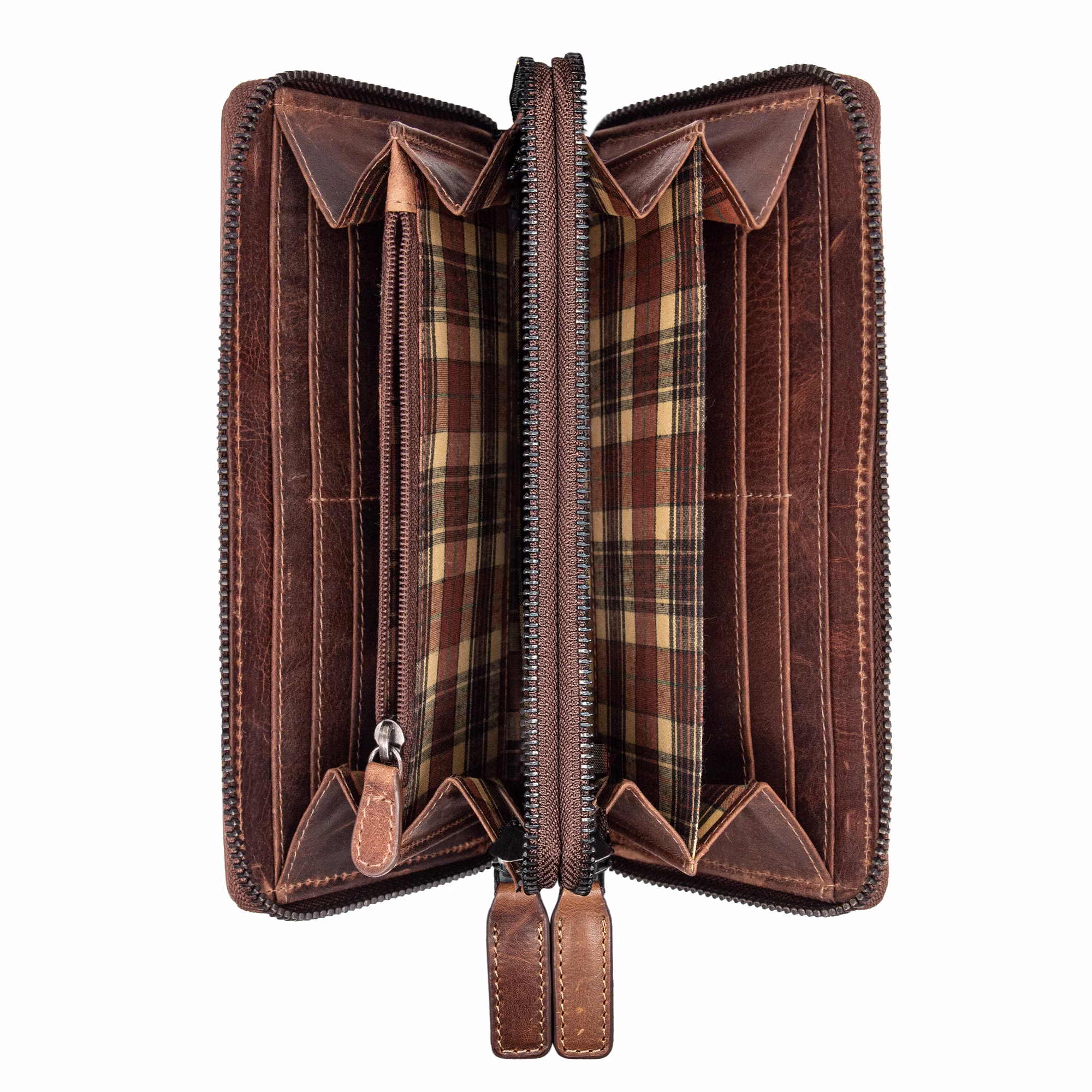 - 2 x grands compartiments principaux avec fermeture éclair pour les billets et un smartphone jusqu'à 6,5 pouces (env. 8 x 16 cm)