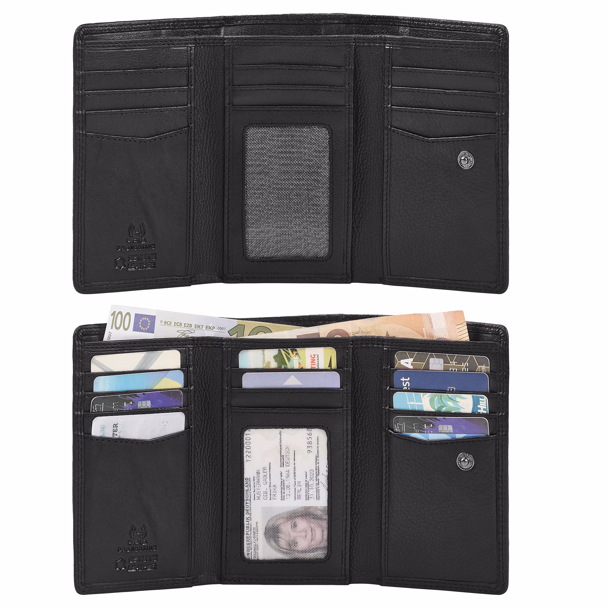 - Grand portefeuille femme: 14 x emplacements pour cartes, incluant un compartiment pour documents | 3 x emplacements pour cartes supplémentaires | 2 x grands compartiments pour billets