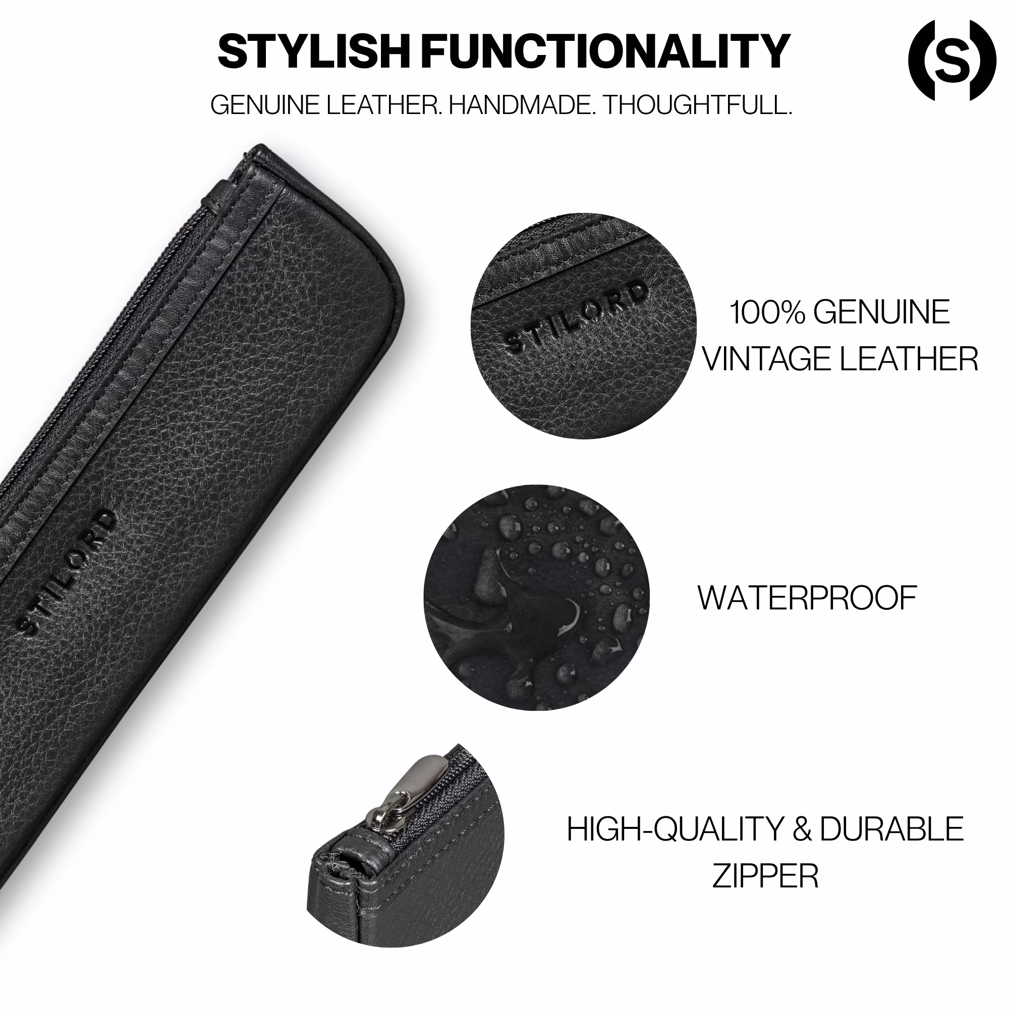 pochette cuir en cuir "Kane" garde vos stylos avec élégance, sécurité et toujours à portée de main.STILORD "Kane" – Trousse à stylos en cuir véritable pour femmes et hommes