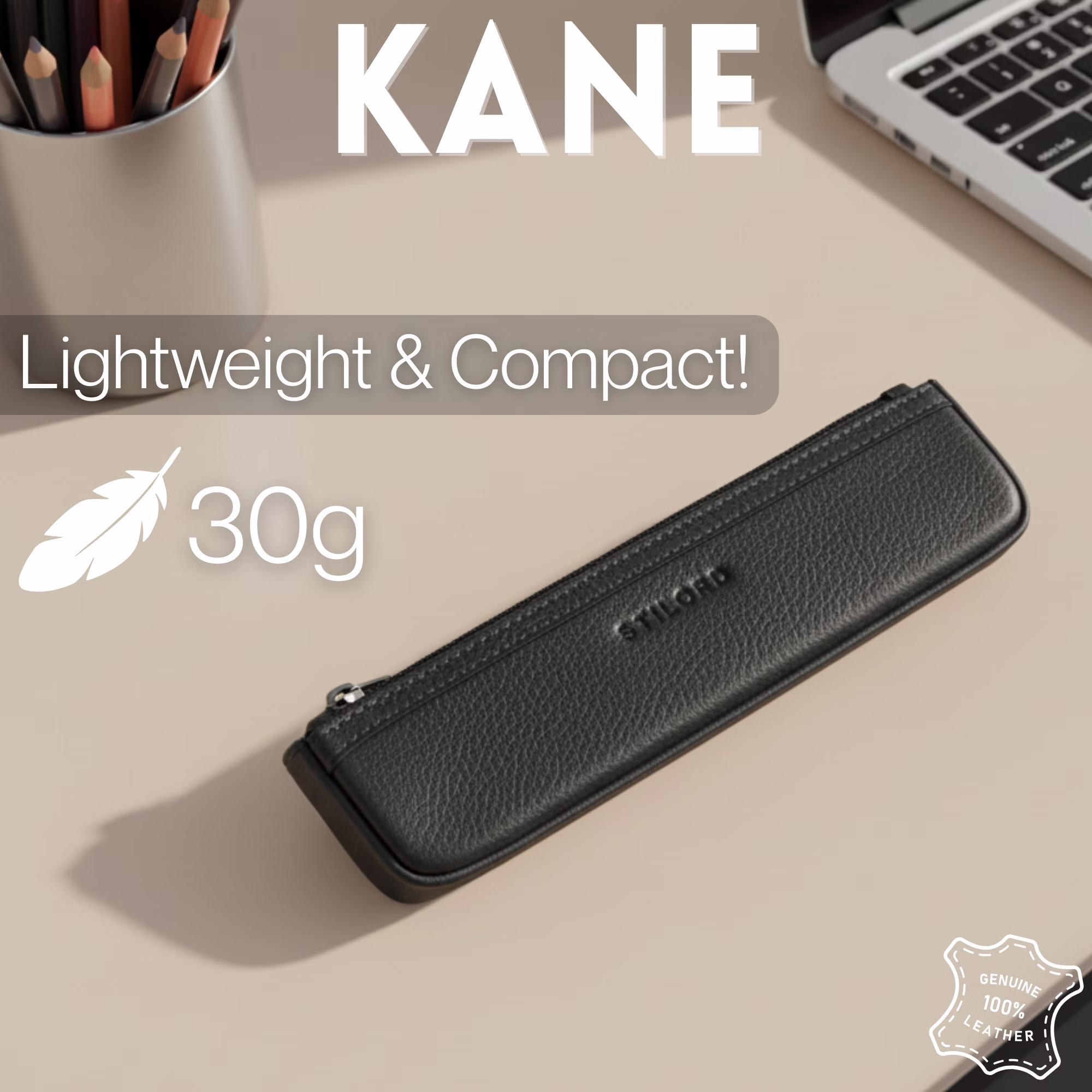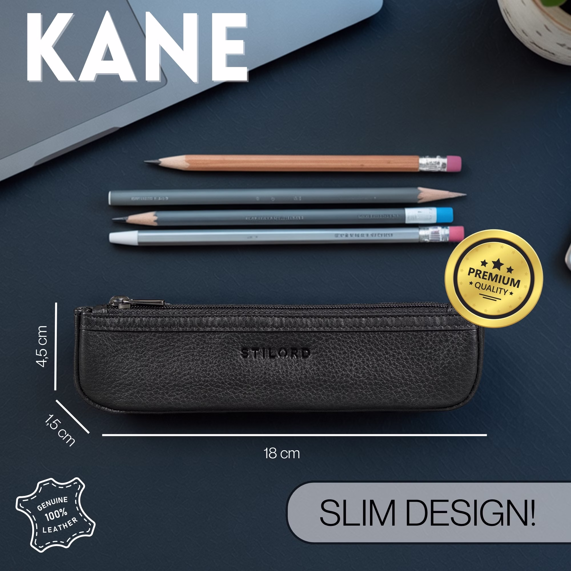 - DÉTAILS : Dimensions : 18 x 1,5 x 4,5 cm | Poids : 30 g | Matière : cuir véritable naturel | Modèle : "Kane" | Marque : STILORD | Compatibilité : stylos, crayons, fournitures d’écriture | Points forts : design fin, fermeture éclair de qualité, cuir robuste