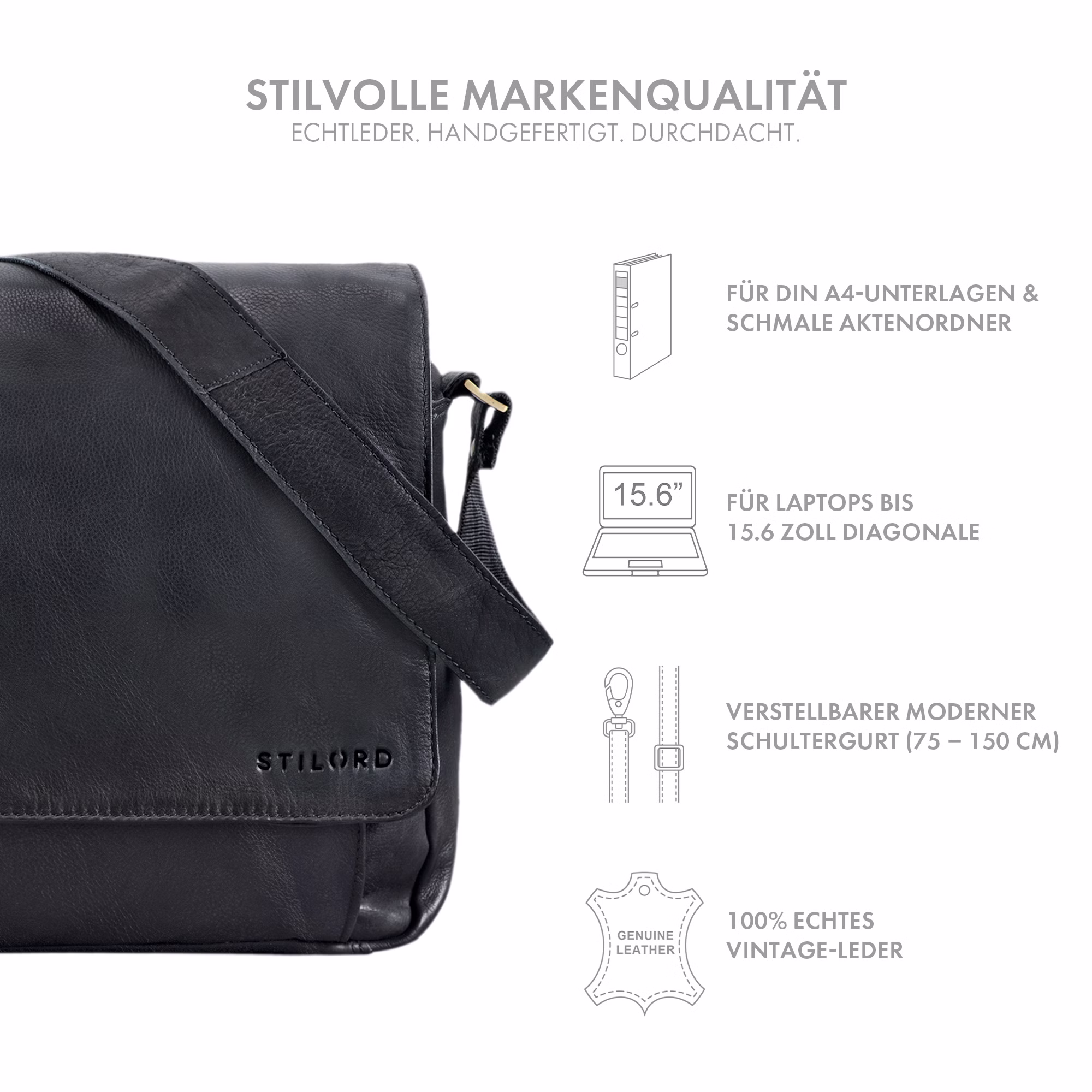 UNIQUE & RAFFINÉ: Chaque sacoche en cuir véritable STILORD est une pièce unique avec une patine et une texture naturelle inimitables