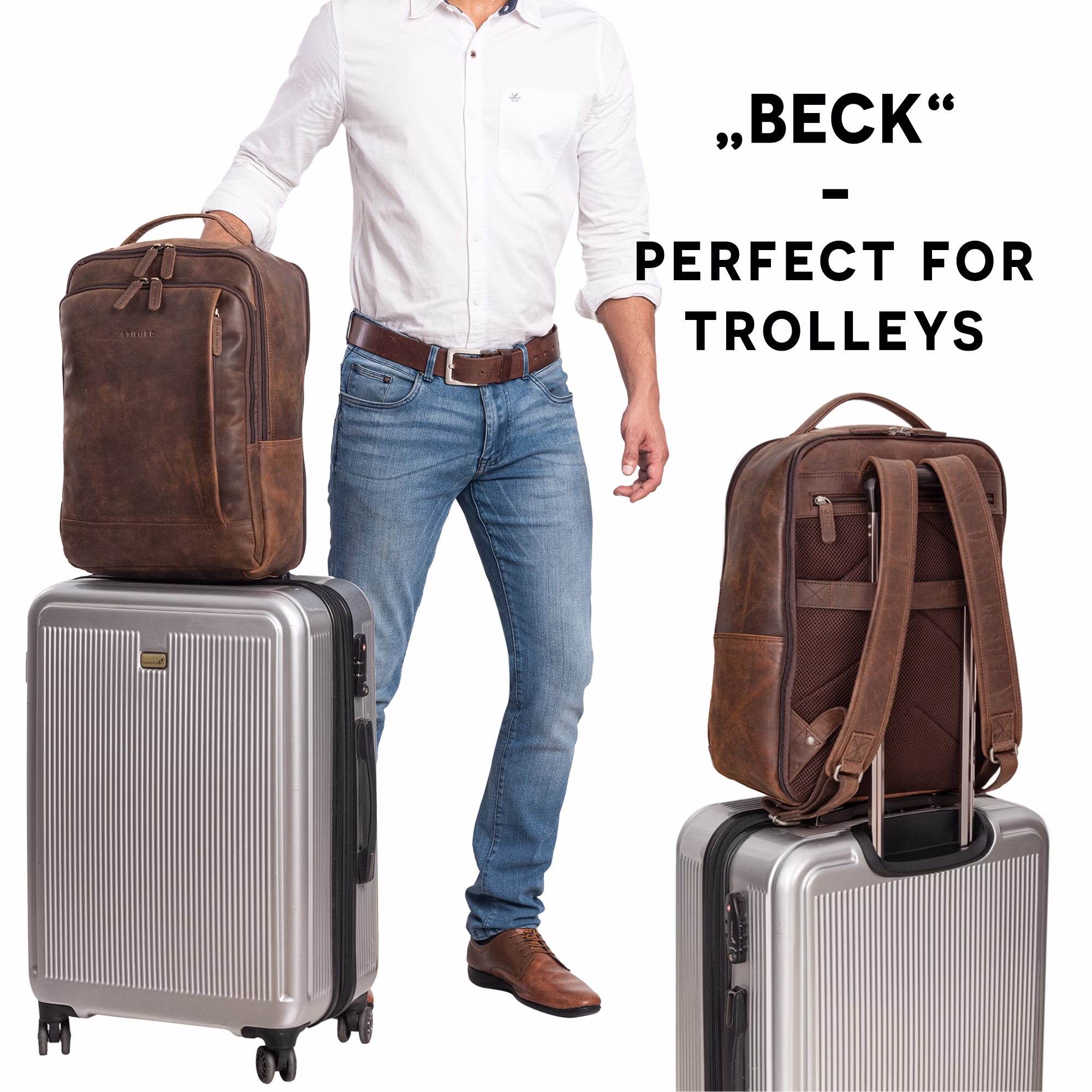 • COMPATIBLE DE VOYAGE : Grâce à sa boucle pratique pour trolley, le daypack en cuir est un compagnon de voyage idéal. Les sangles en cuir rembourrées et réglables ainsi que les rembourrages dorsaux ergonomiques assurent un confort maximal, même sur les longs trajets.