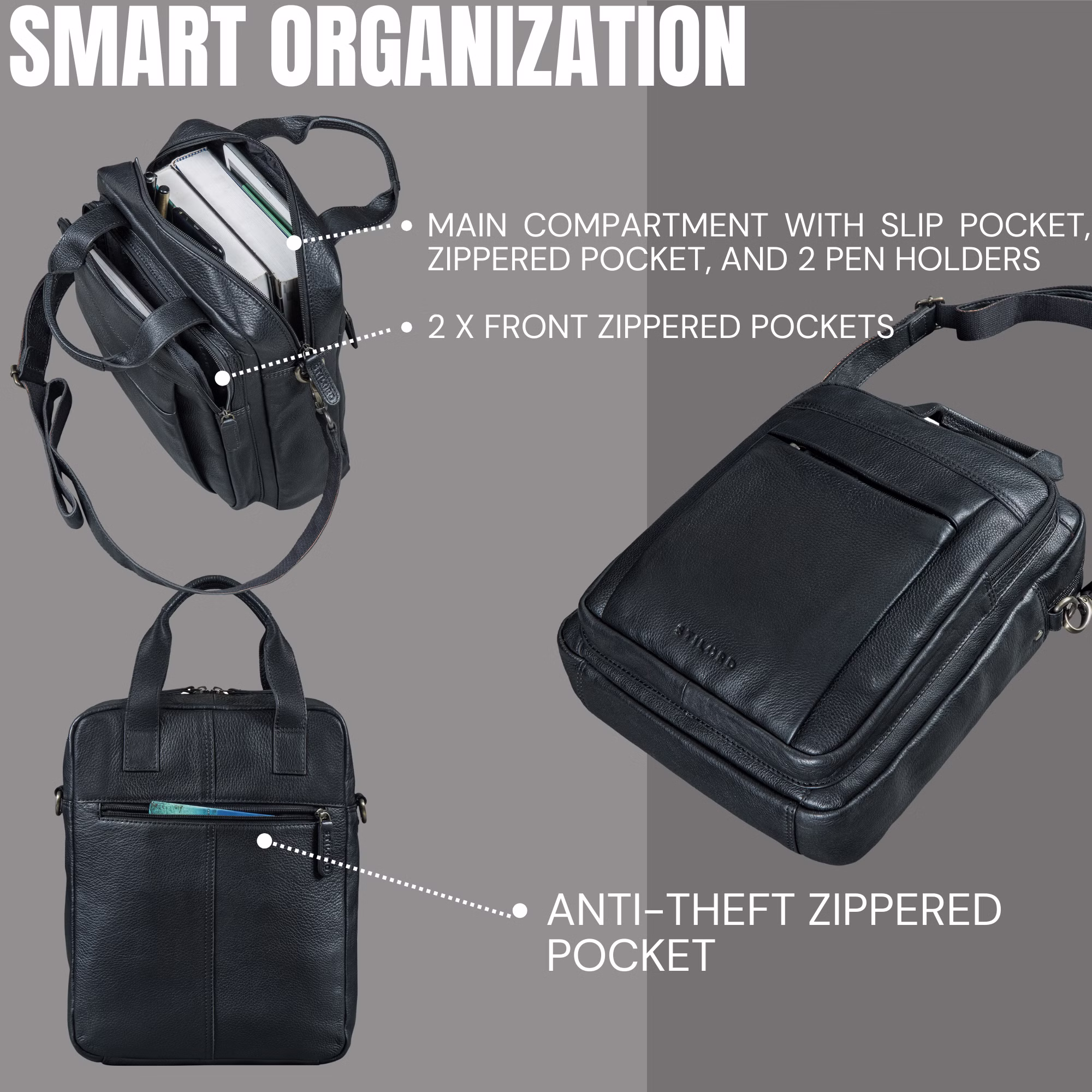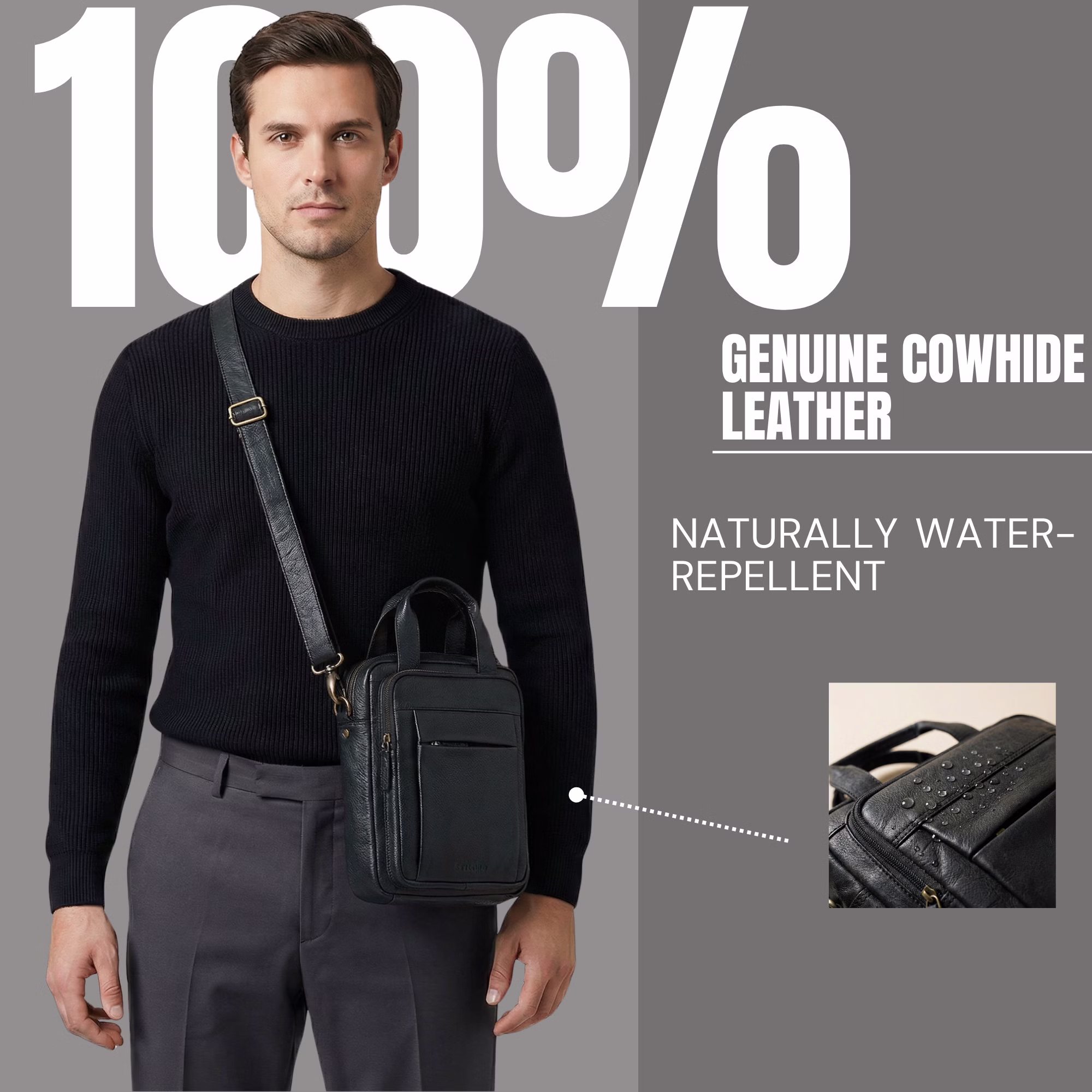 • ESPACE OPTIMISÉ POUR L’ESSENTIEL : Assez grand pour un ordinateur portable 13,6”, des documents A4 et vos accessoires. Parfait comme sac bandoulière homme cuir ou petite sacoche pour usage quotidien.