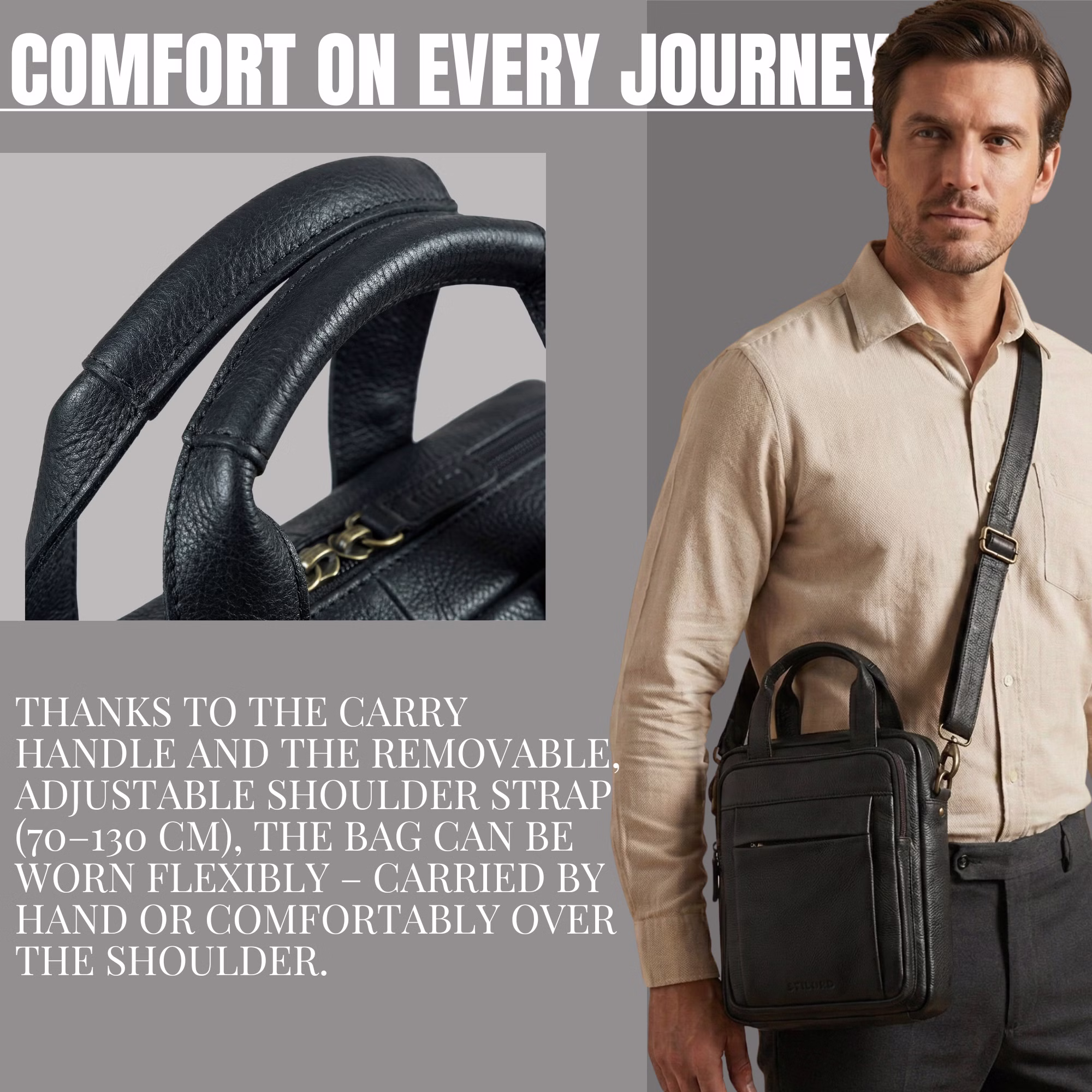 La sacoche homme cuir “Eldon” de STILORD incarne l’équilibre parfait entre élégance intemporelle, organisation moderne et authenticité. Conçue pour les hommes exigeants, elle combine un cuir véritable haut de gamme avec une structure fonctionnelle adaptée à la vie quotidienne, au bureau ou en voyage.