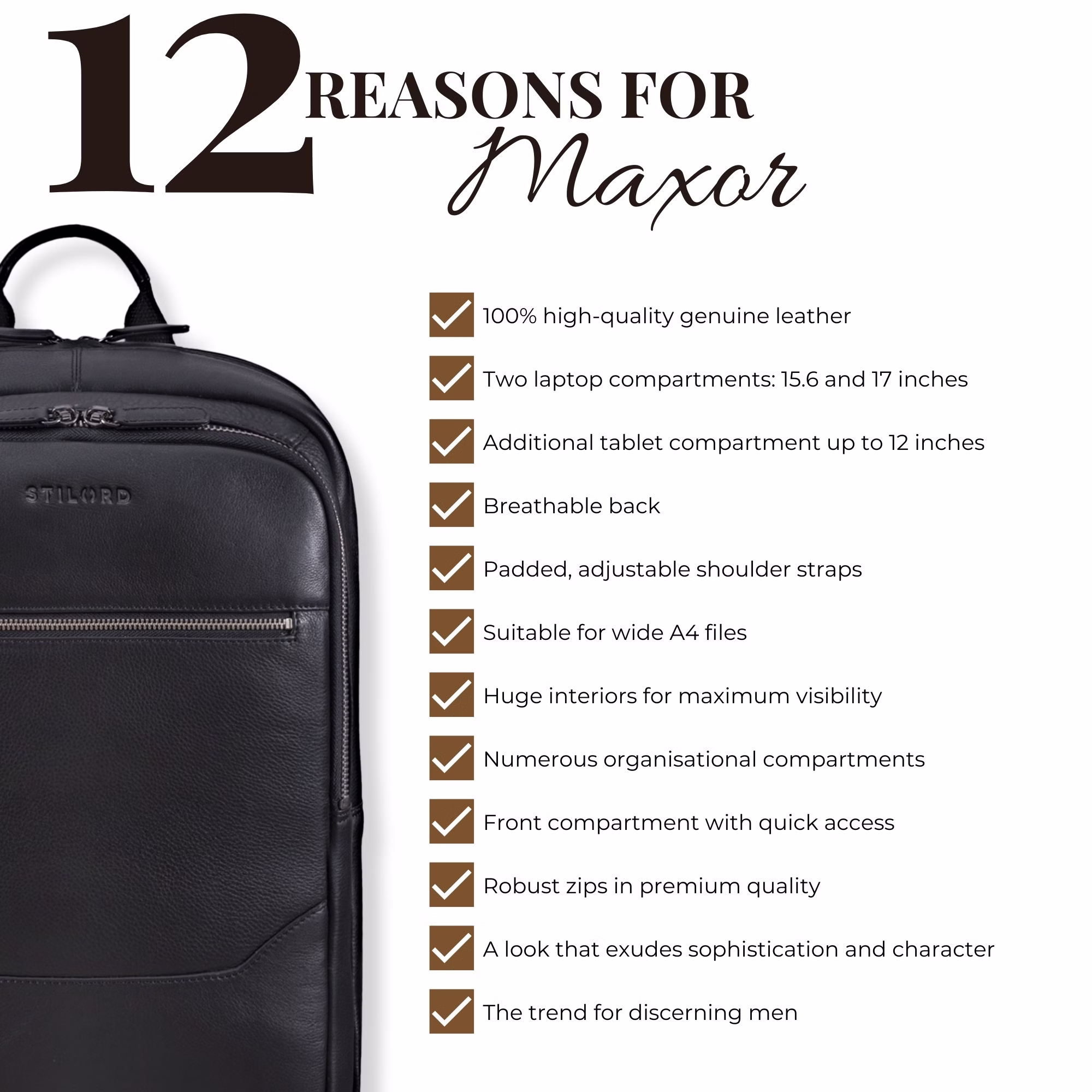 STILORD "Maxor" – Sac à Dos Business en Cuir Véritable