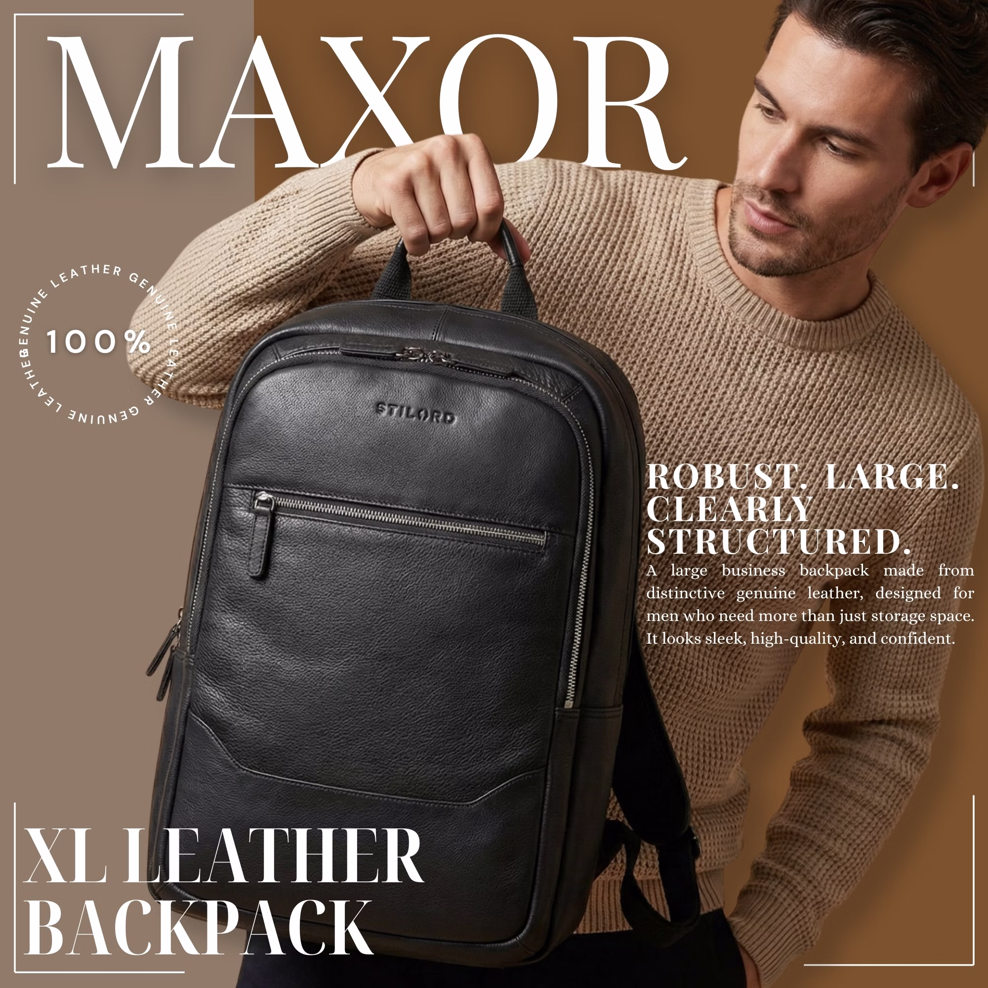 - LOOK PREMIUM POUR QUOTIDIEN PROFESSIONNEL : Avec “Maxor”, vous optez pour un grand sac à dos business en cuir véritable, élégant, représentatif et idéal pour les hommes souhaitant afficher professionnalisme, organisation et style au bureau ou en déplacement.