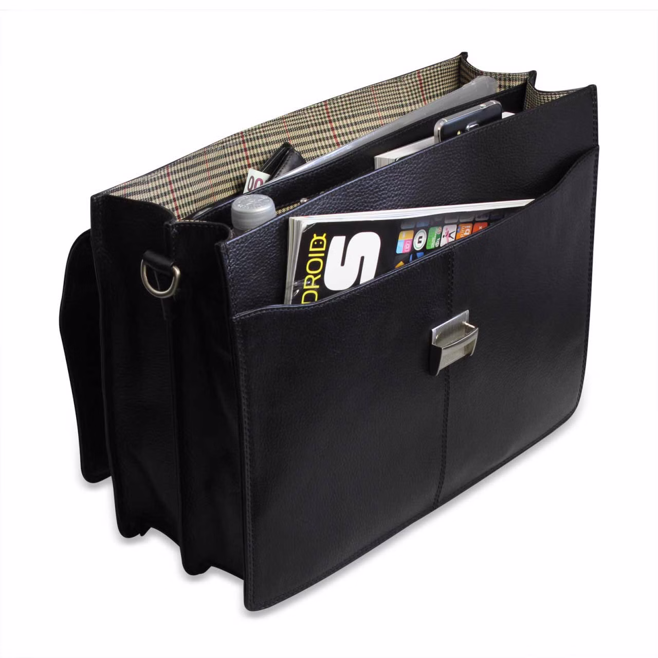 Ce splendid sac d'affaires pour hommes et femmes offre d'espace suffisant pour toutes les choses importantes et même pour un grand dossier. Il y a six compartiments en total pour ranger tous les objets indispensables comme le portable, les clés, un porte-monnaie, une tablette... Additionnel, le sac en cuir est aussi approprié pour un ordinateur portable jusqu'à 15,6 pouces. Avec la bandoulière réglable et amovible, vous pouvez transformer votre besace en un pratique et élégant sac à l'épaule!