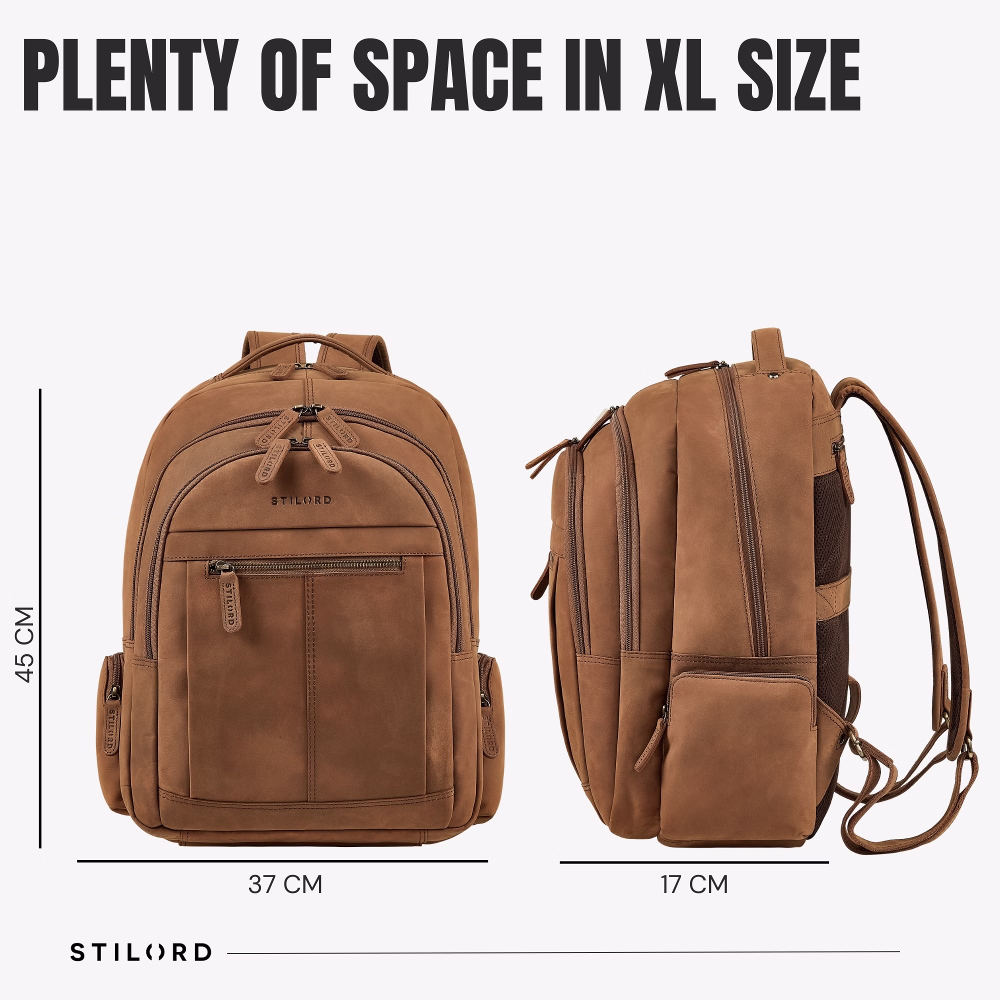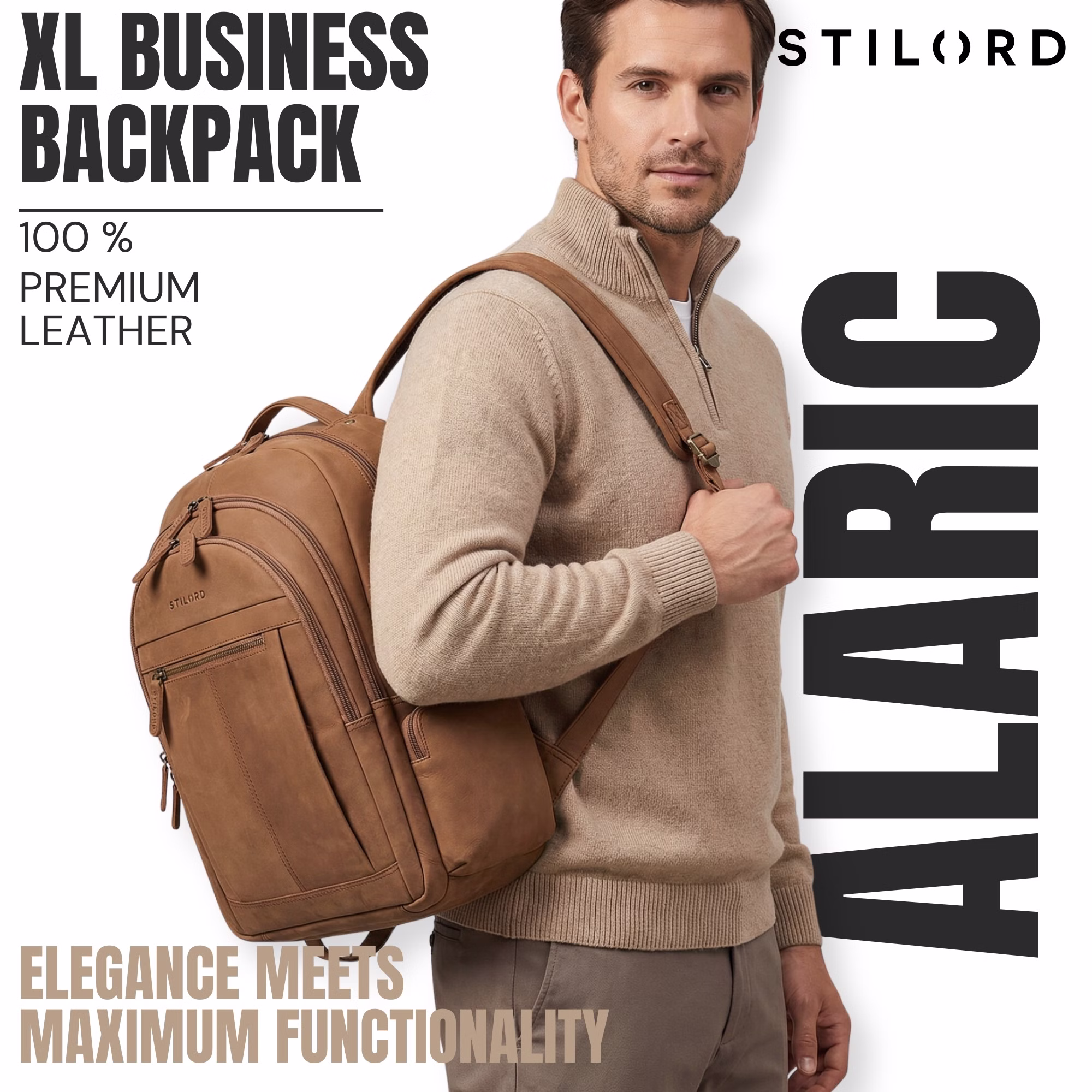 - TOUT EN UN COUP D'ŒIL: Dimensions (L x l x H): 37 × 17 × 45 cm | Poids: 1250 g | Matériau: cuir de vachette | Modèle: "Alaric" | Fabricant: STILORD | Compatibilité: compartiment pour ordinateur portable jusqu'à 17 pouces, grands classeurs DIN A4