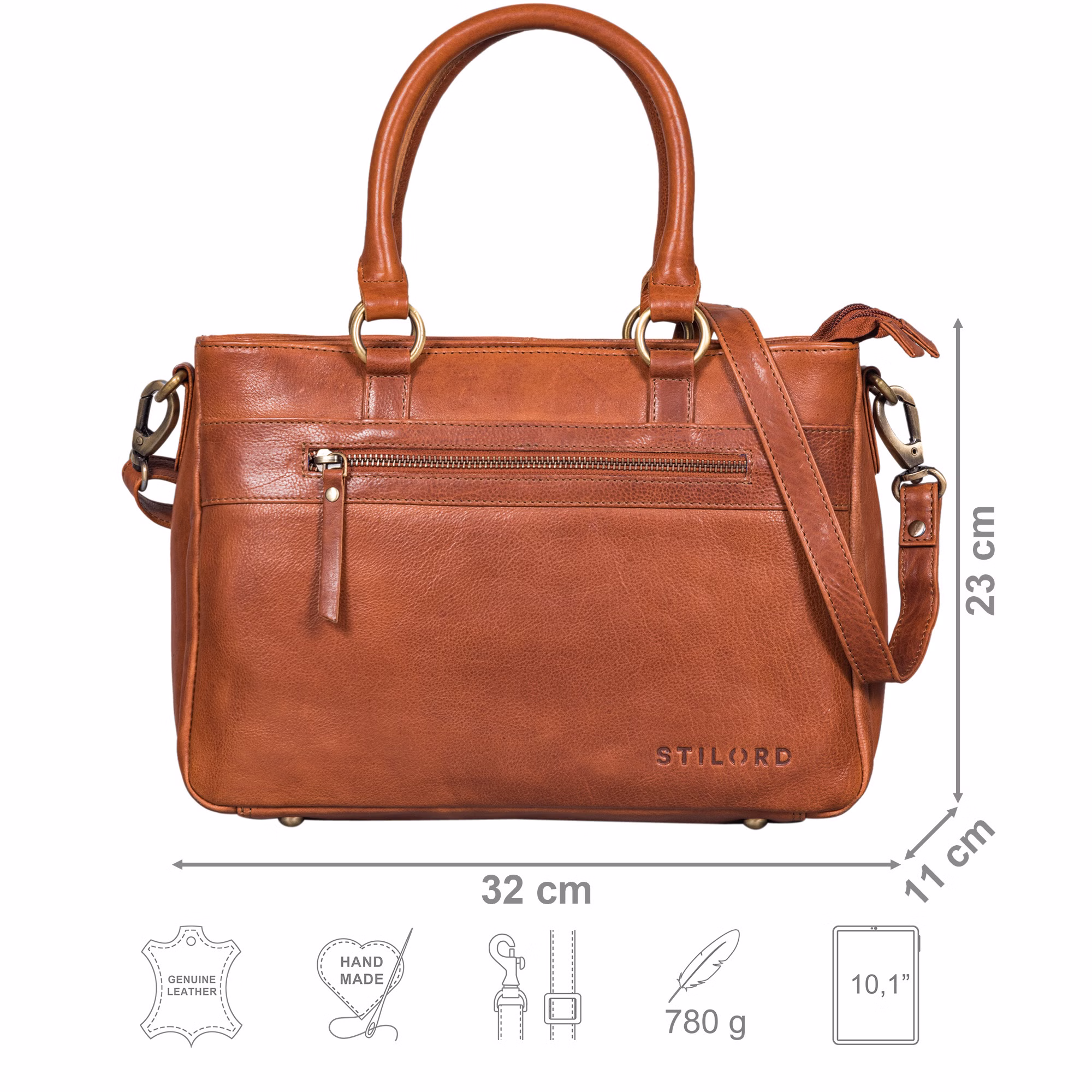 - Dimensions (LxHxP) : env. 32 x 11 x 23 cm | Modèle : "Frauke" | Poids : 780 grammes | Matériau : cuir véritable | Type de cuir : cuir de vachette | Fabricant : STILORD