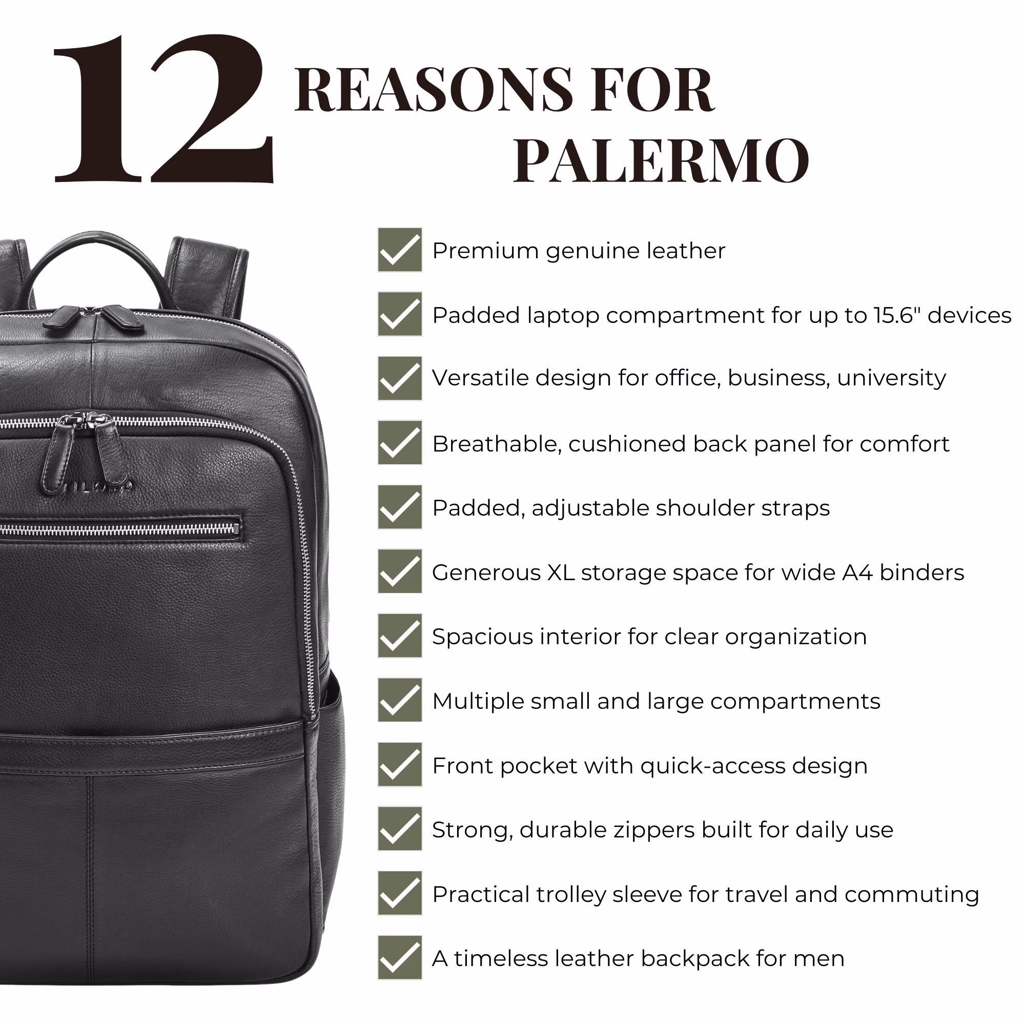 "Palermo" XL Sac a Dos Cuir Homme pour Ordinateur 15.6 Pouces