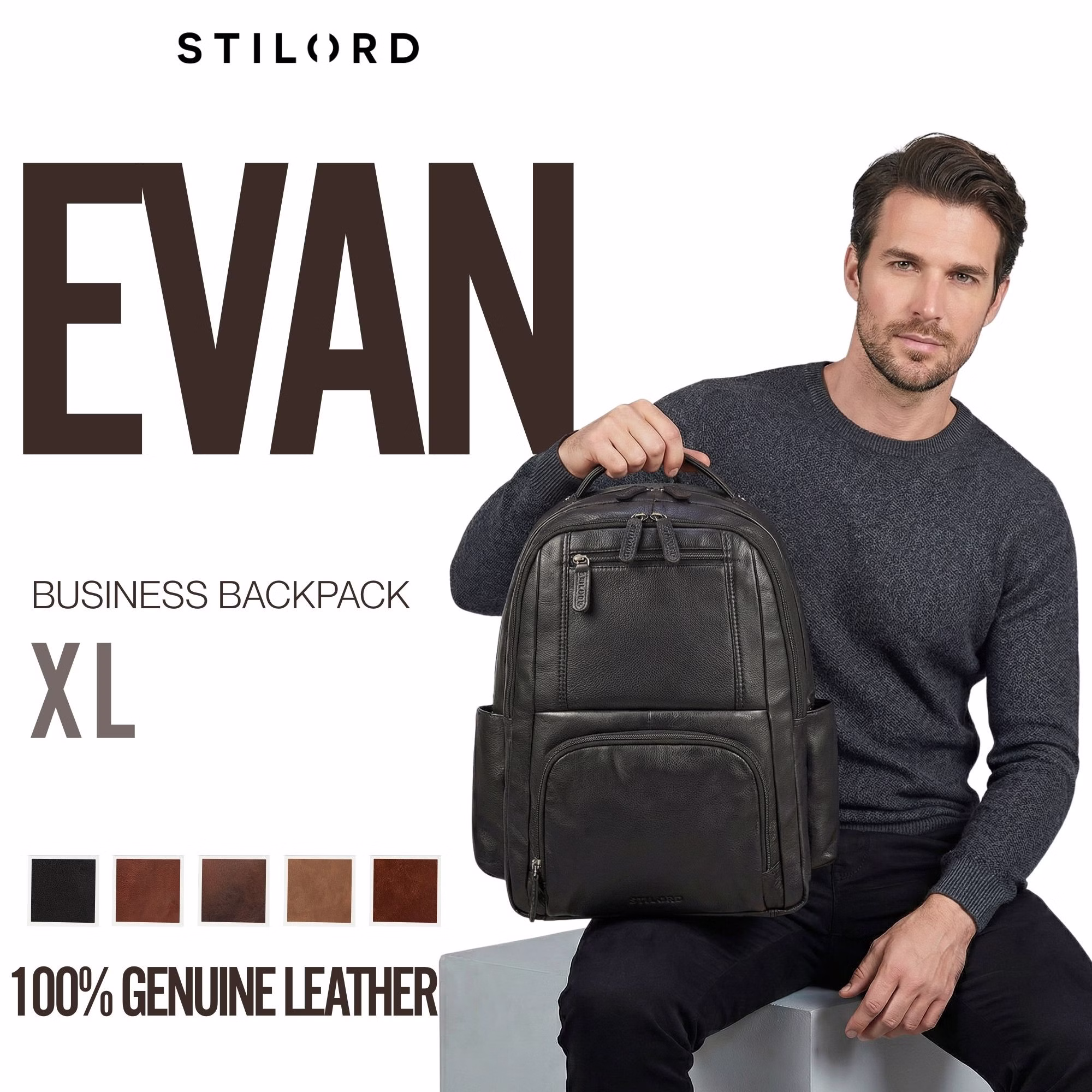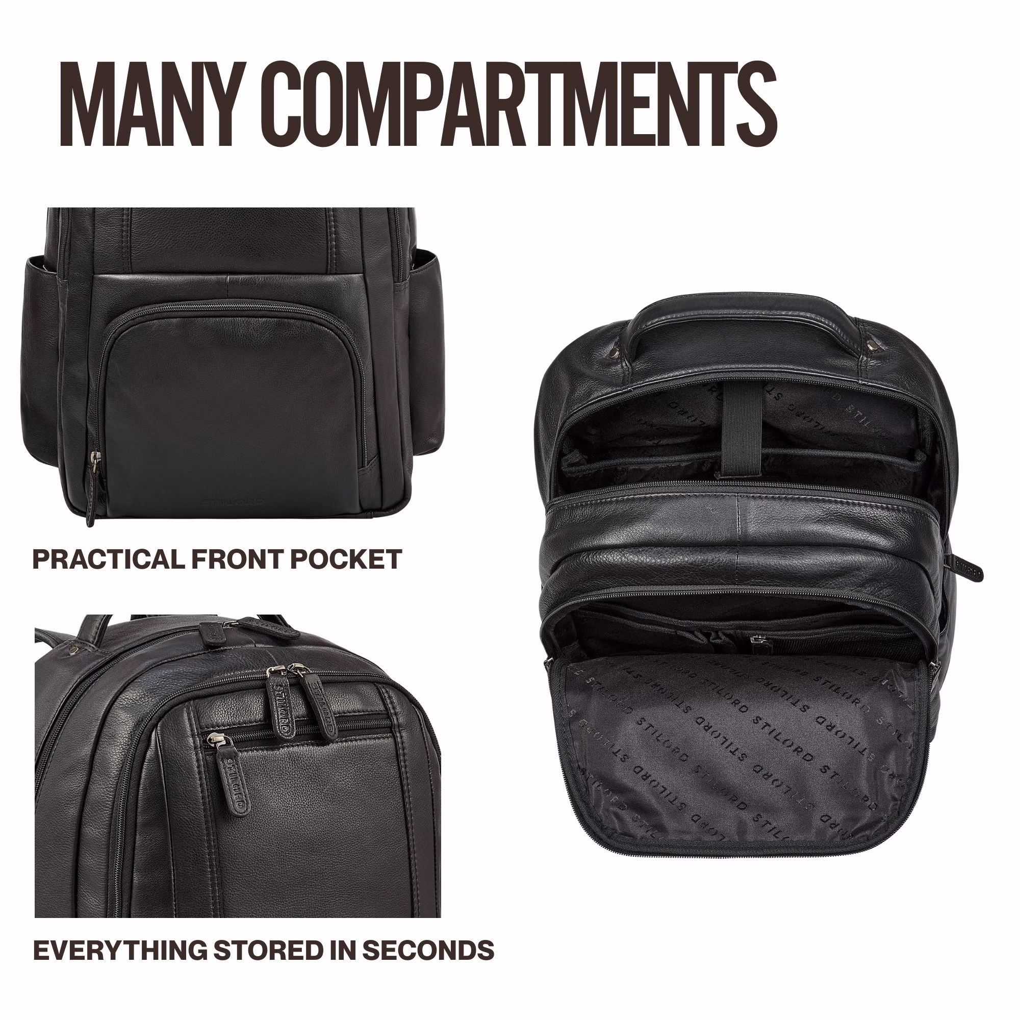 - Dimensions (LxPxH) : env. 38 x 12 x 42 cm | Poids : 1280 g | Modèle : "Evan" | Marque : STILORD | Matière : cuir véritable | Poche ordinateur : 32 x 40 cm pour 16 pouces