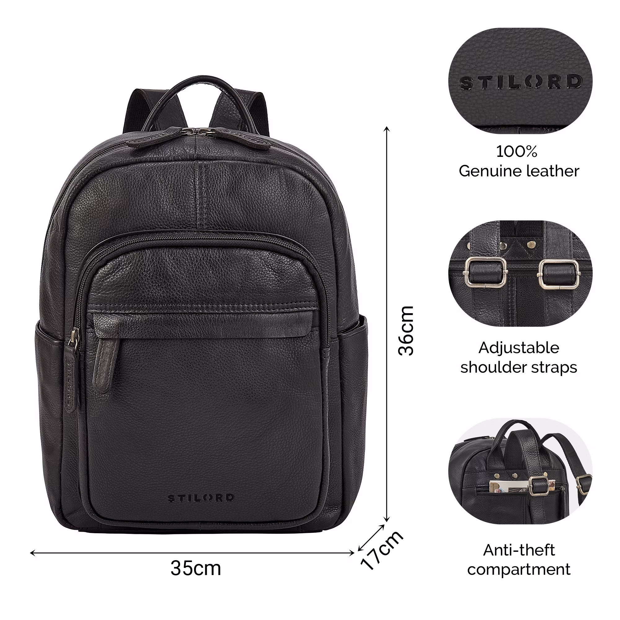 • TOUS LES DÉTAILS EN UN COUP D’ŒIL: Dimensions (Lxlxh) : env. 35 x 17 x 36 cm | Poids : 450 g | Modèle : "Dolores" | Matériau : cuir véritable | Fabricant : STILORD | Compatibilité : iPad 13 pouces | Particularités : poche antivol, poches zippées, bretelles réglables