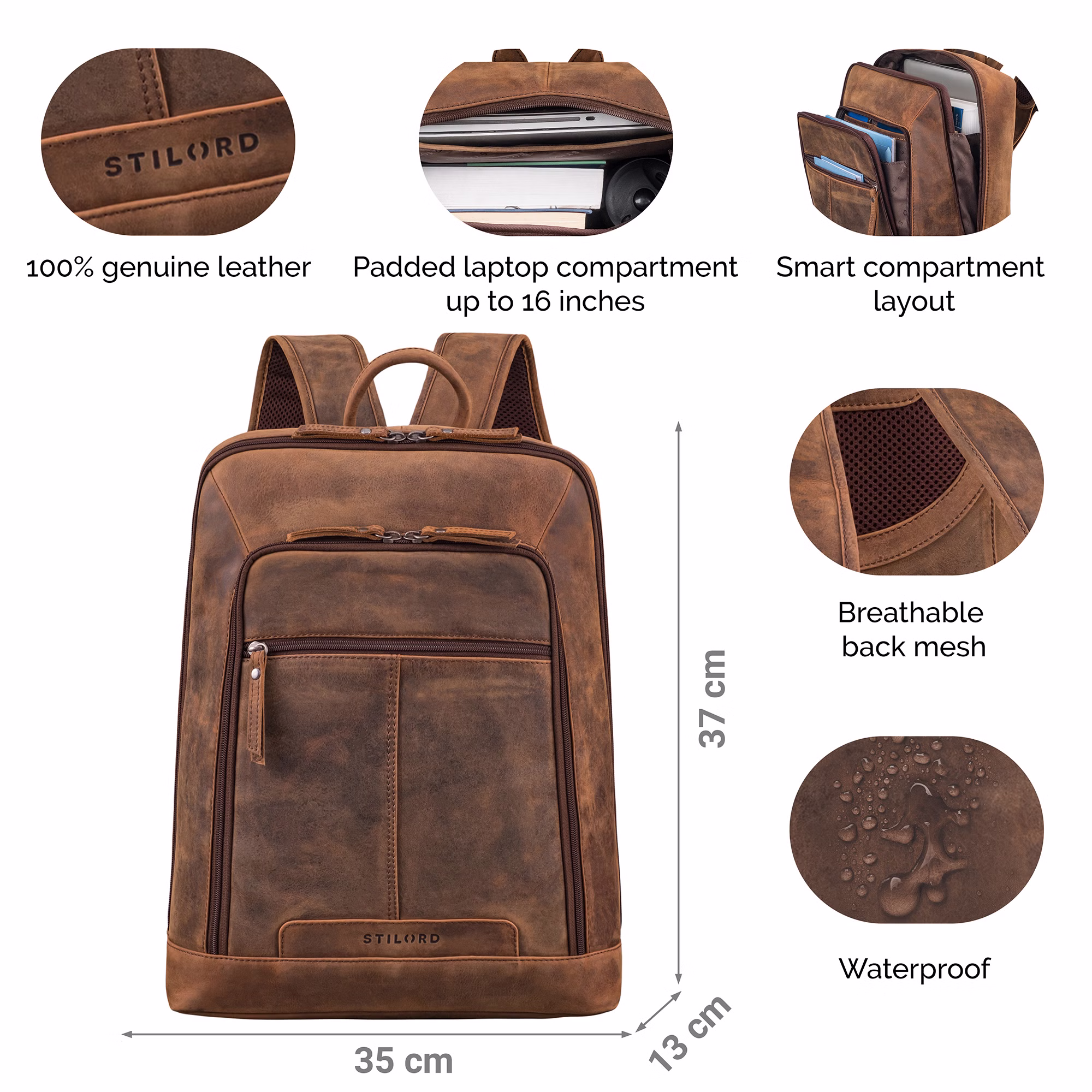 STILORD "Giulio" Sac a dos pc portable 15.6 pouces en cuir – Business et élégance
