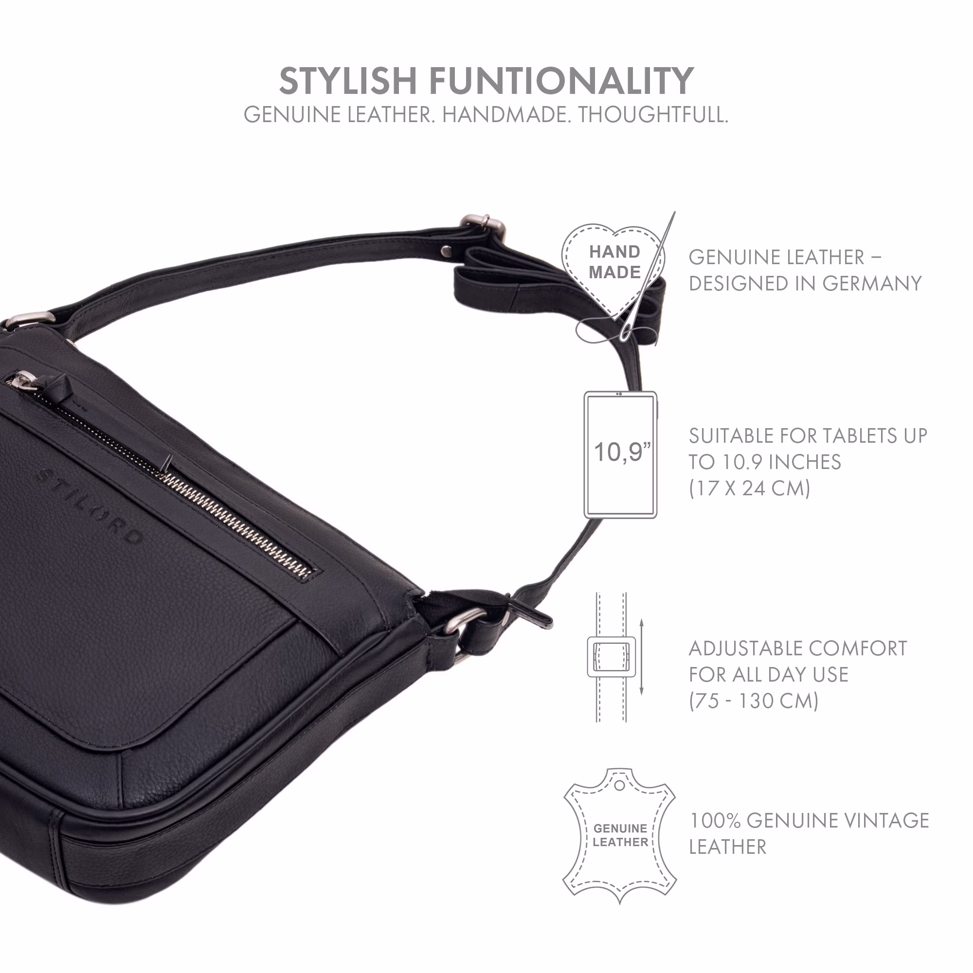 - Dimensions (L x P x H): 26 x 6 x 21 cm | Modèle: "Philine" | Matière: cuir de vache véritable | Poids: 400 g | Marque: STILORD