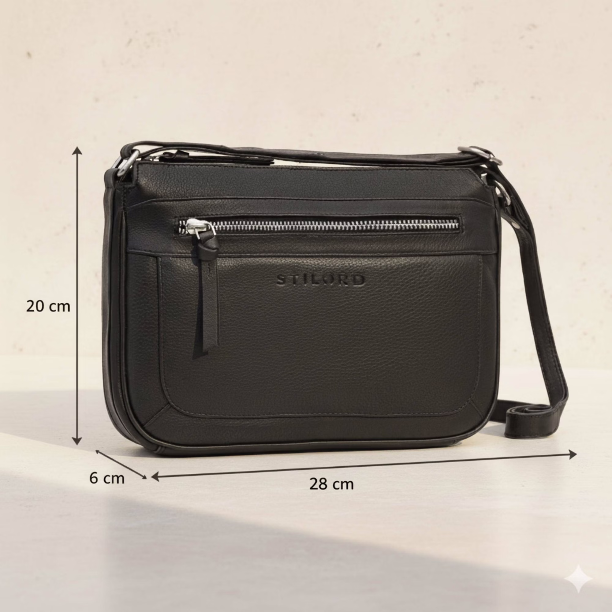 Vous recherchez votre nouveau sac préféré? Découvrez "Philine", la sac bandoulière en cuir femme de la marque de lifestyle vintage STILORD. La petit sac bandoulière femme cuir offre de la place pour votre maquillage, votre smartphone, une petite bouteille d’eau, votre portefeuille et vos clés. Portée en bandoulière ou simplement sur l’épaule, la sac femme vintage vous accompagnera avec plaisir. Pratique et élégante à la fois, la petit sacoche femme séduit par son cuir vintage véritable, son design moderne et sa durabilité, faisant d’elle une fidèle sacoche cuir femme petit pour le quotidien, les soirées ou les occasions spéciales.