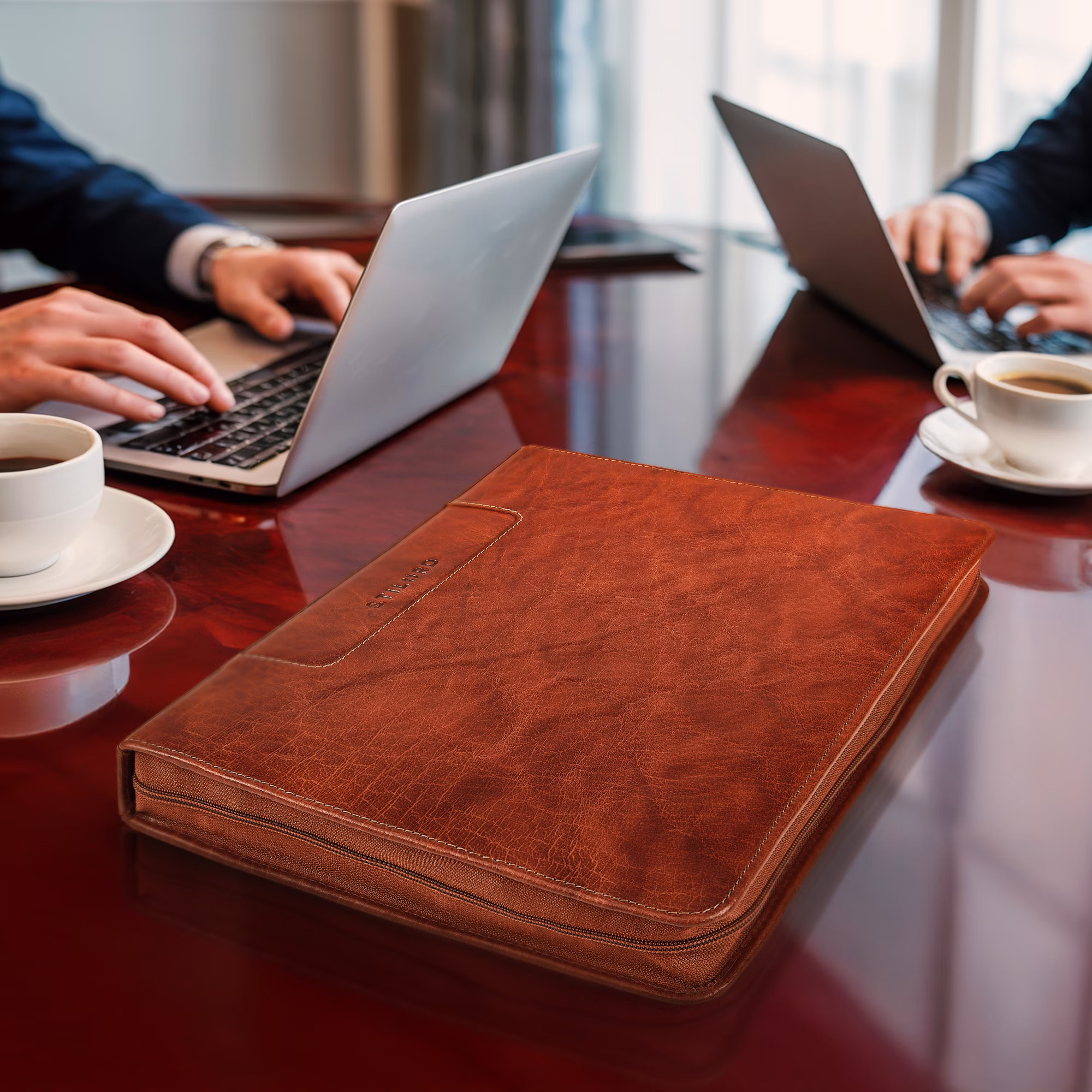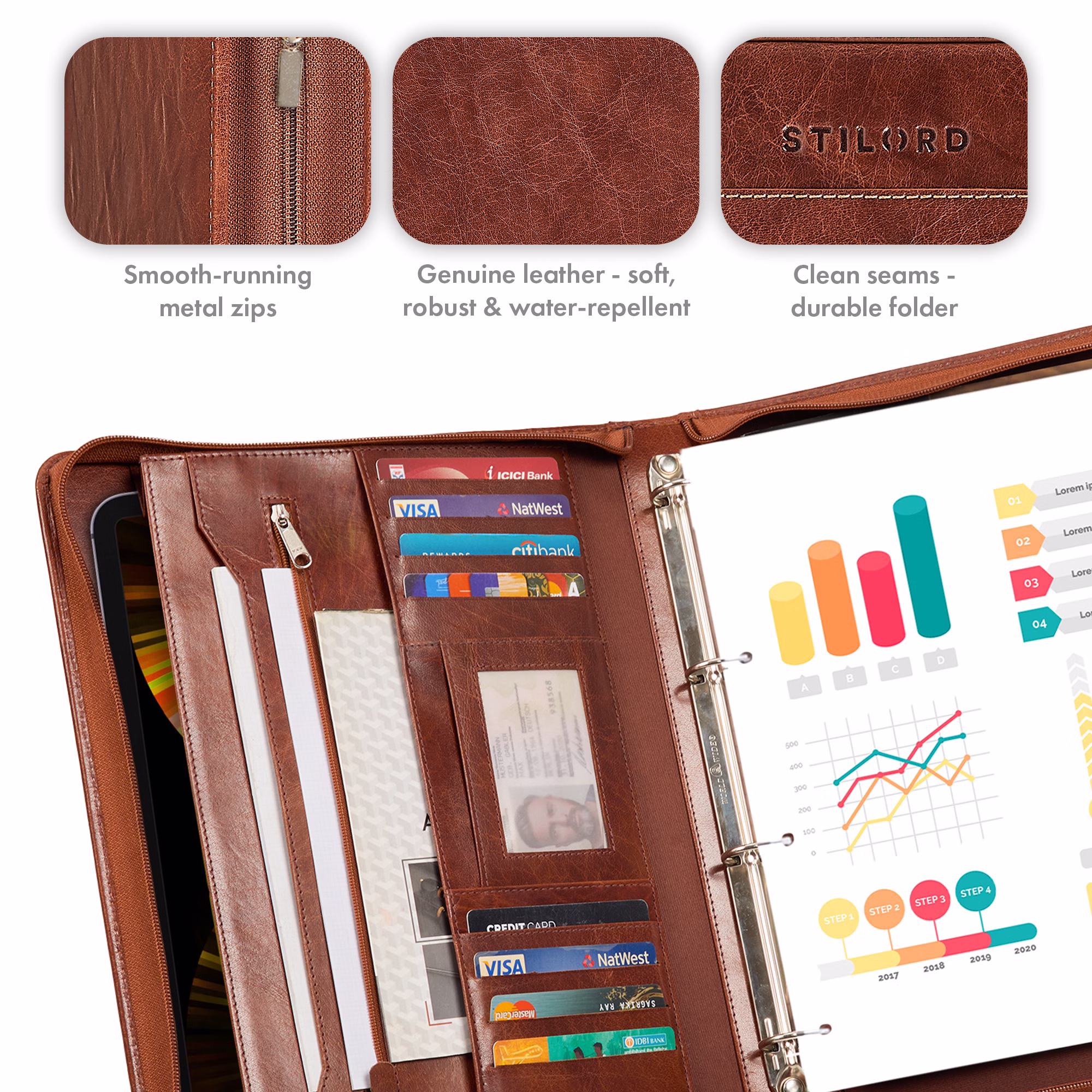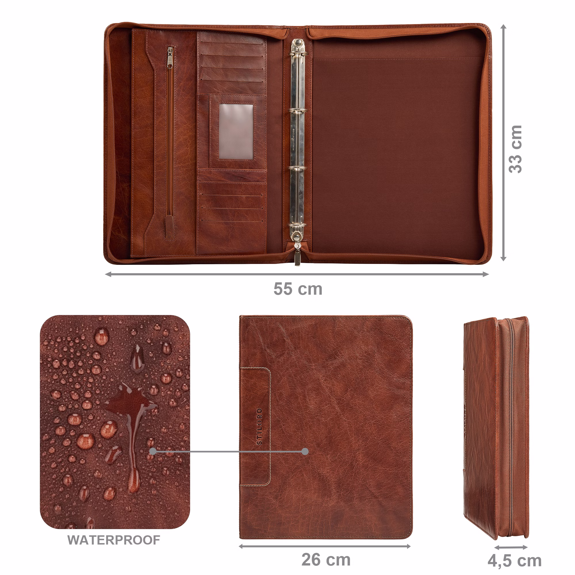 - Chemise vintage A4 en cuir avec anneaux : Porte-documents en cuir de qualité avec fermeture zippée – idéale comme conférencier, organisateur, pochette pour tablette 11", ou chemise professionnelle pour le bureau