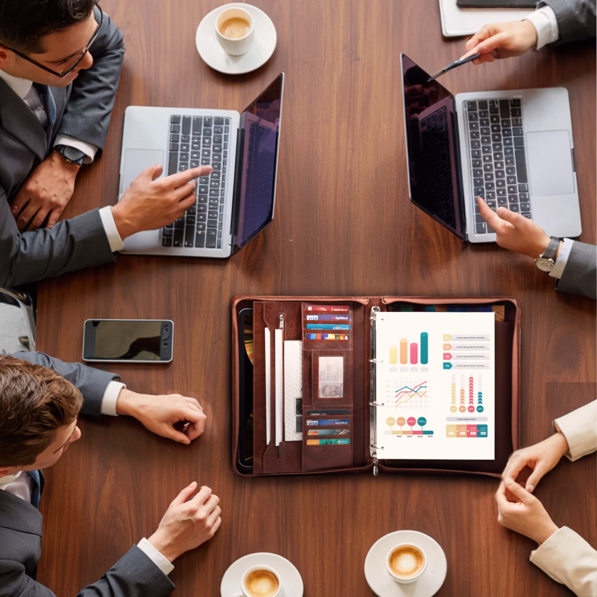 - Design business élégant : Pochette en cuir avec anneaux pour hommes et femmes soucieux de leur image