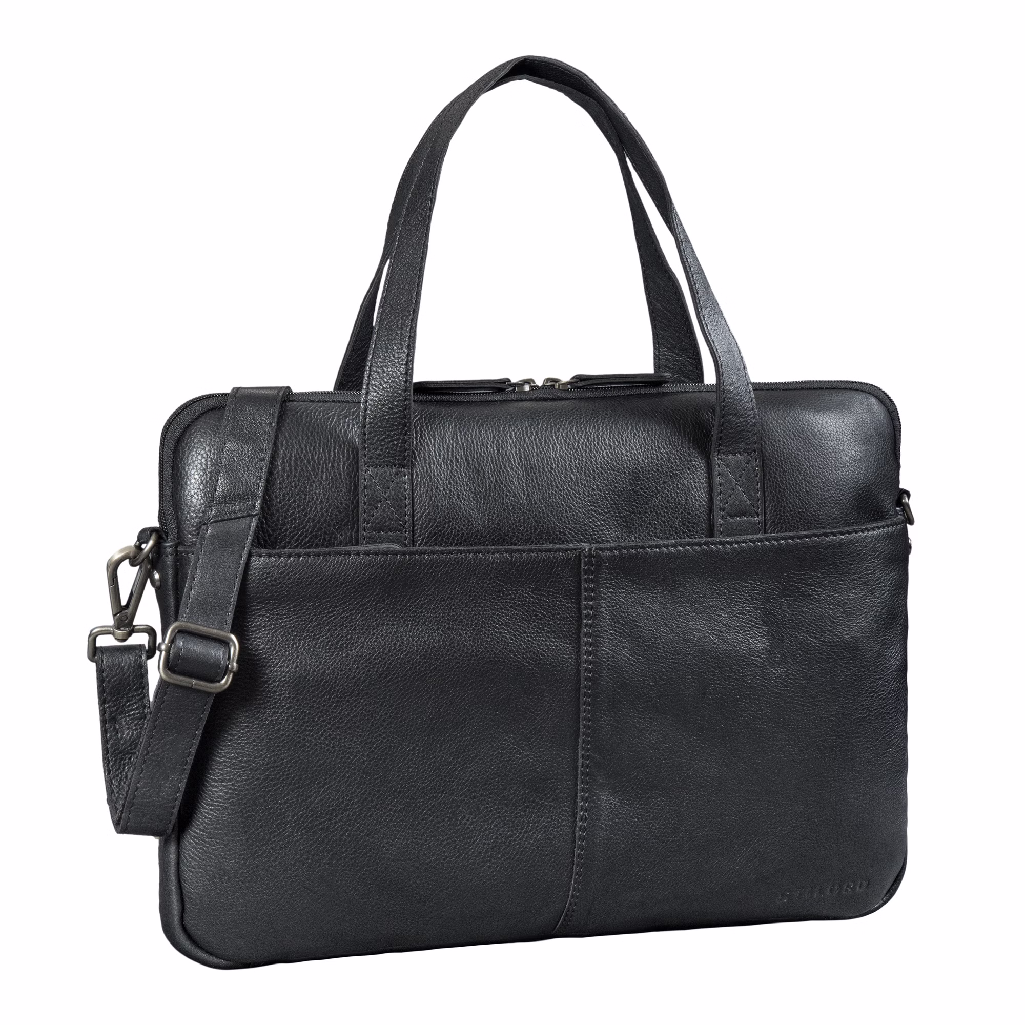 "Leonel" Sacoche Ordinateur Cuir 15.6 Pouces avec Sangle et Poignées pour Homme
