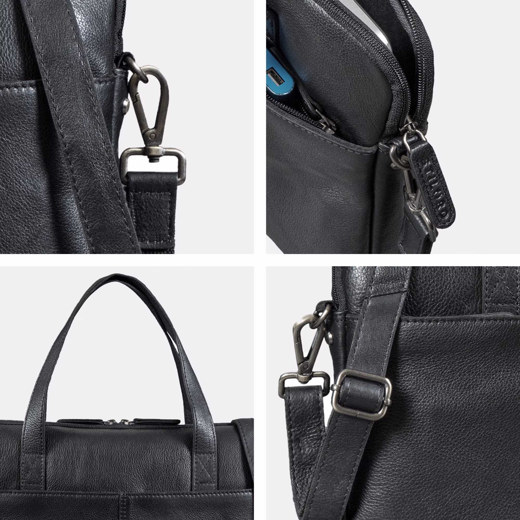 - FLEXIBLE ET CONFORTABLE EN DÉPLACEMENT: housse pc portable cuir avec bandoulière réglable et amovible (75–140 cm), deux poignées et sangle trolley pratique – la cartable cuir homme idéale pour le travail, les voyages ou l’université
