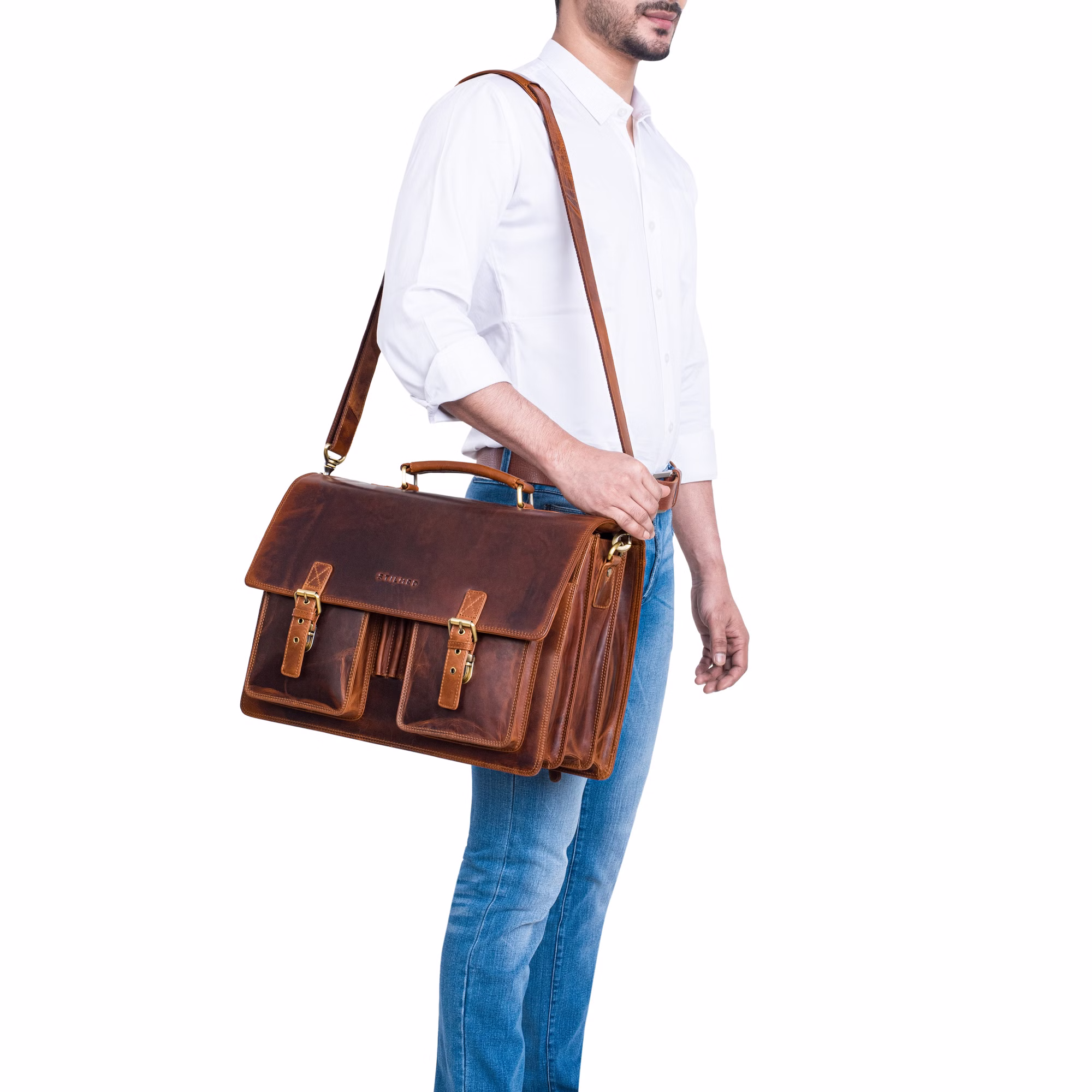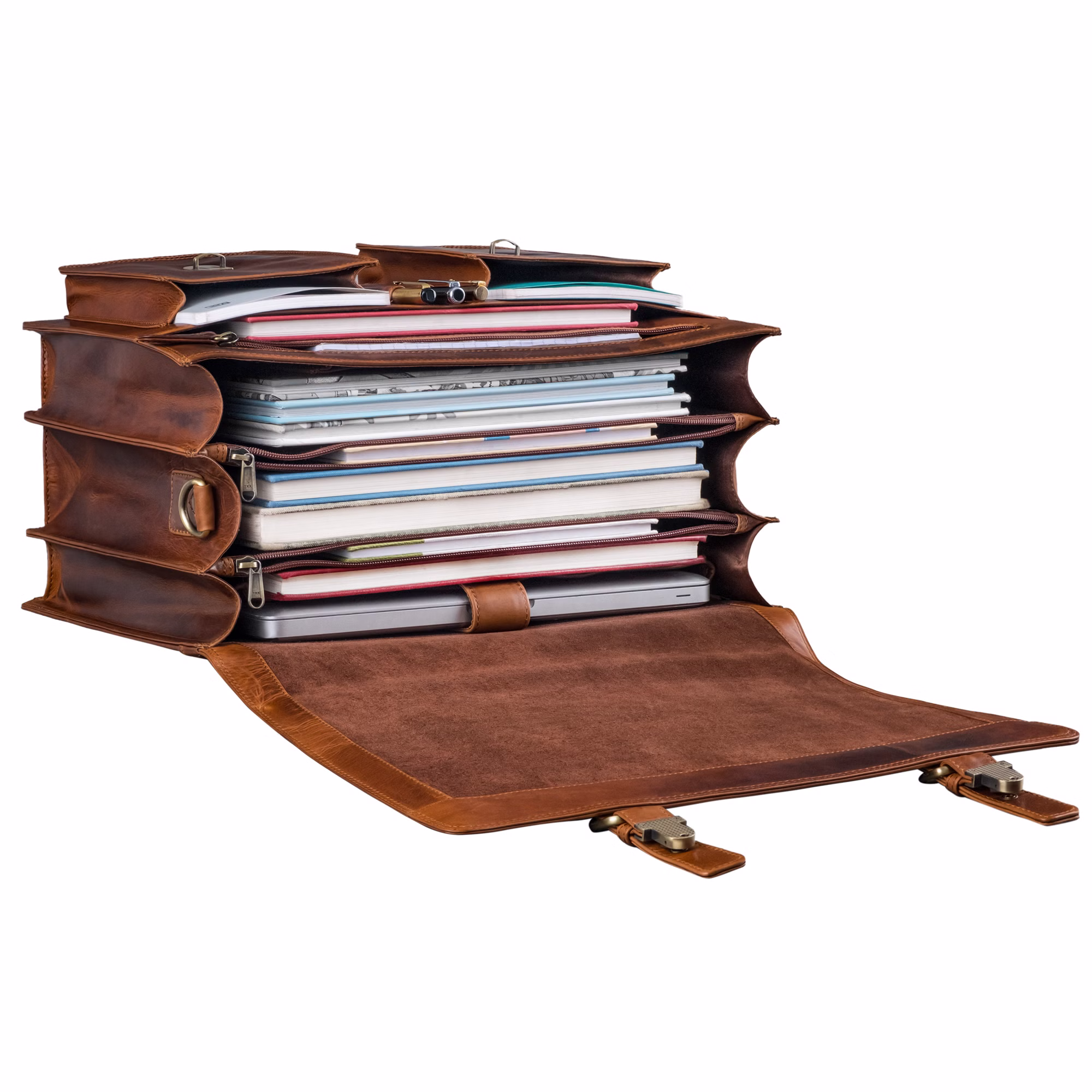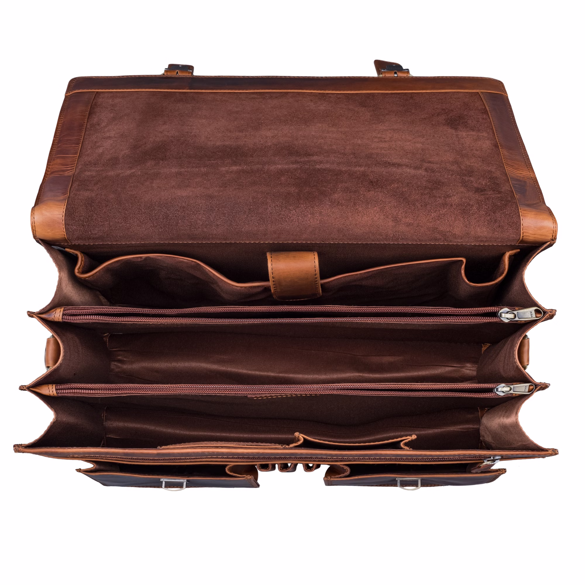 • GRAND ESPACE DE RANGEMENT avec 11 compartiments | Deux sections principales généreusement dimensionnées pour un transport sans faille des fichiers A4 | Pochette rembourrée pour ordinateur portable | Fabriqué avec du cuir véritable de haute qualité