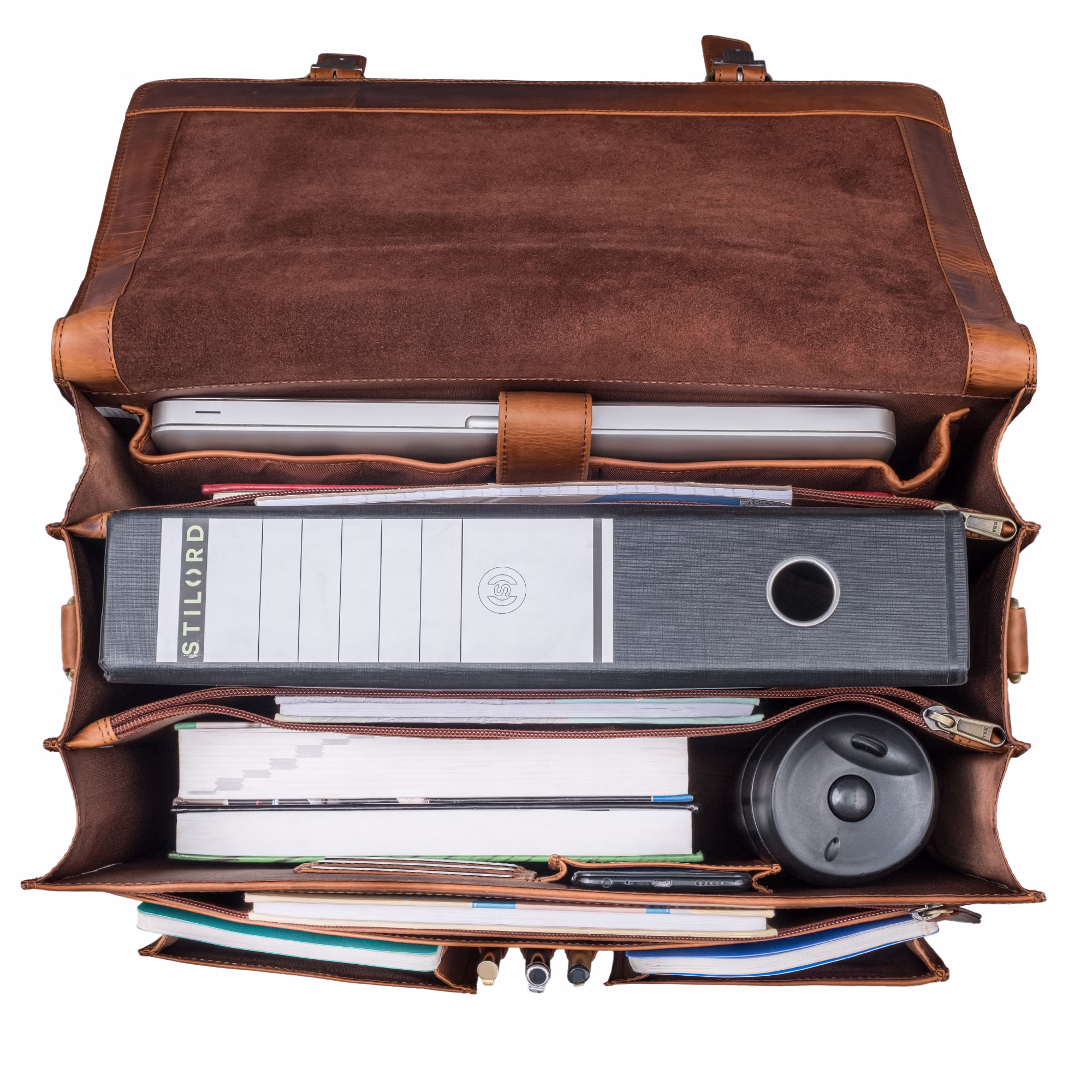 • AFFIRMEZ VOTRE STYLE PROFESSIONNEL avec le sac serviette XL en cuir 'Anton' de STILORD | Compartiment séparé pour ordinateur portable de 15.6' | Système d'attache pour chariot inclus | IL EST DIFFICILE DE TROUVER UNE SACOCHE STILORD PLUS APPRÉCIÉE QUE "ANTON". Elle a déjà rendu des milliers de clients heureux dans le monde entier. Après de nombreux cycles de production, elle est désormais meilleure que jamais