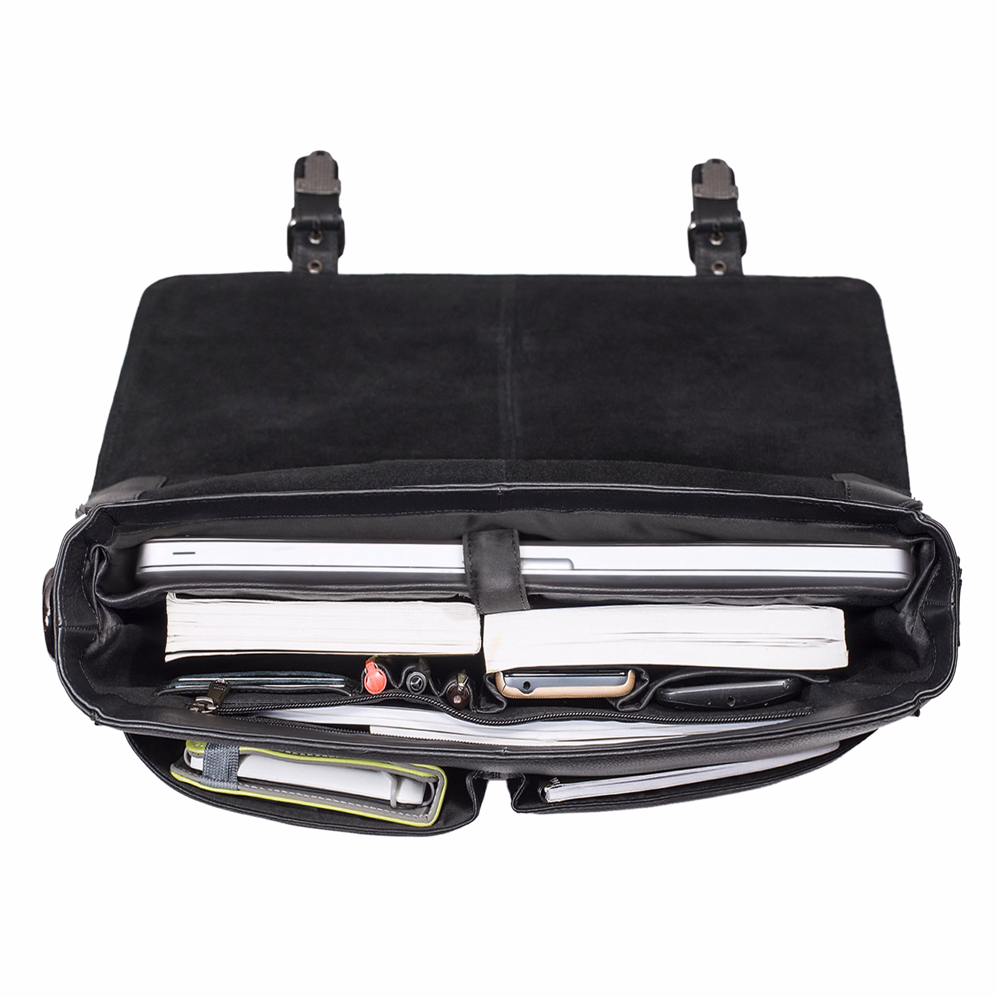 - MALLETTE AVEC CONFORT: La cartable cuir homme combine design classique et praticité. Le rabat avec deux boucles assure une fermeture sécurisée, tandis que la poignée solide et la bandoulière rembourrée et amovible (90 – 140 cm) offrent différentes options de port.