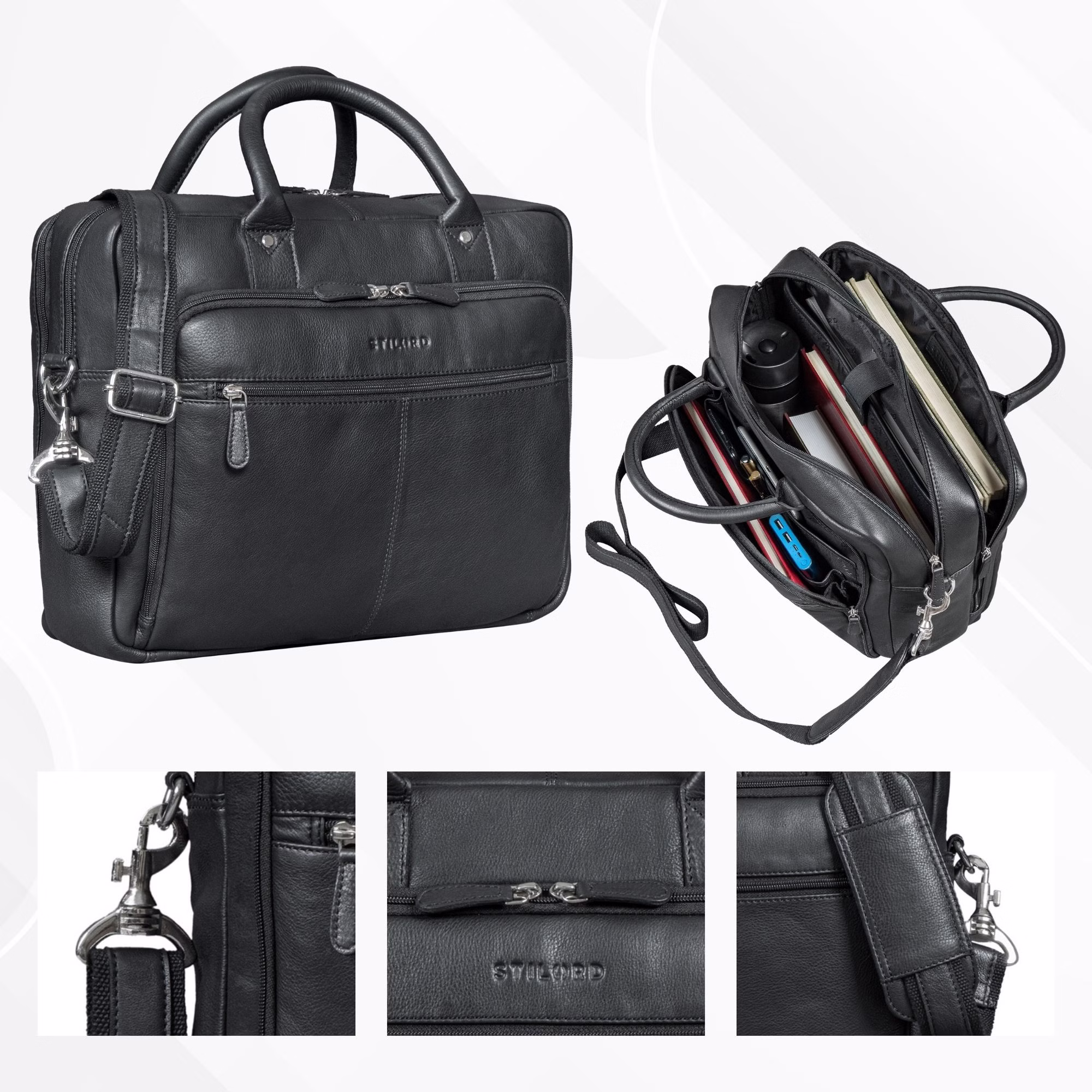 - DÉTAILS: Dimensions: env. 40 x 14 x 30 cm | Poids: 1500 g | Modèle: "Jerome" | Matière: cuir de vache véritable | Marque: STILORD | Compatibilité: ordinateurs portables jusqu’à 15,6 pouces ou MacBook 16 pouces (37 x 27 cm)