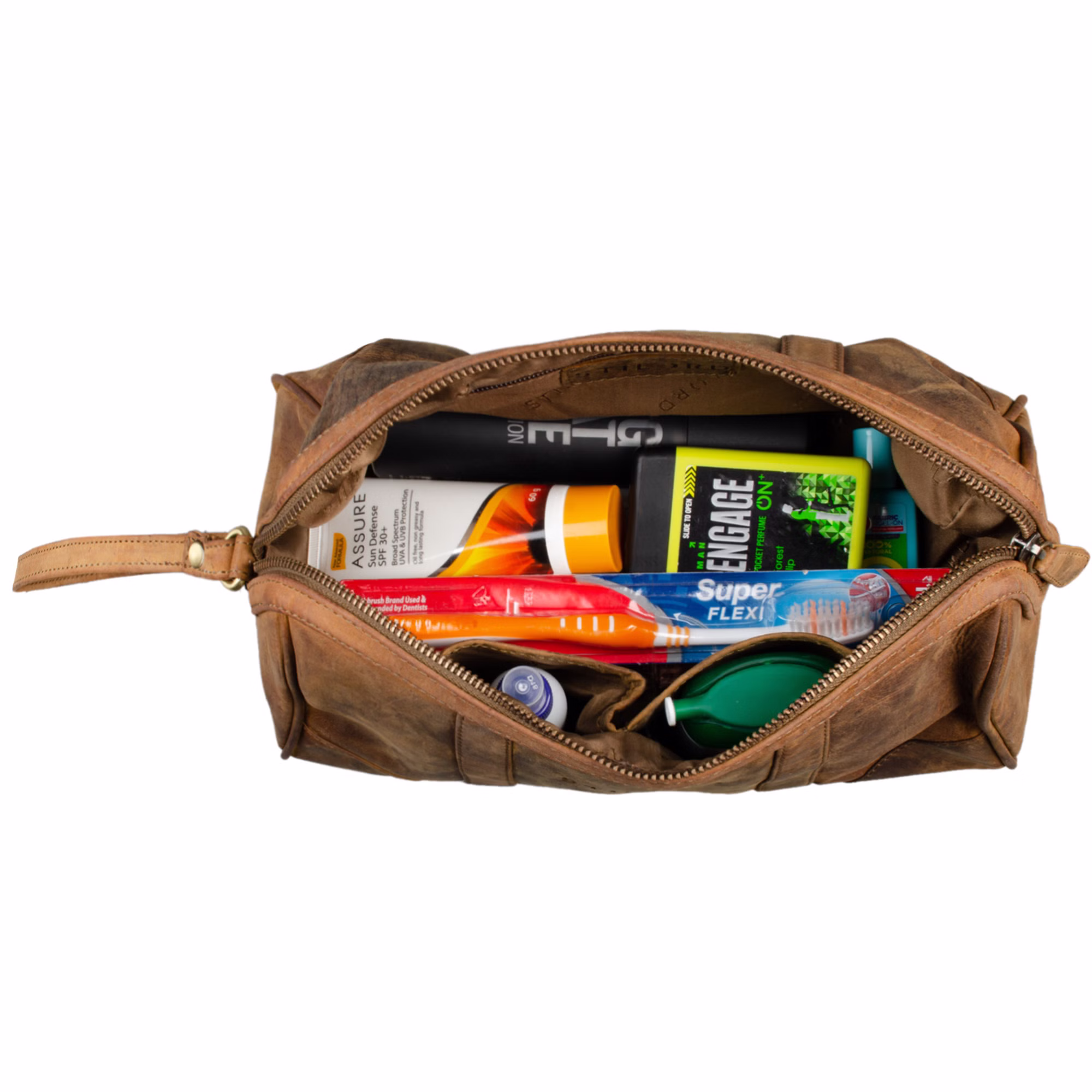 - Trousse de toilette en cuir véritable au design vintage intemporel - élégant, de haute qualité et élégant
