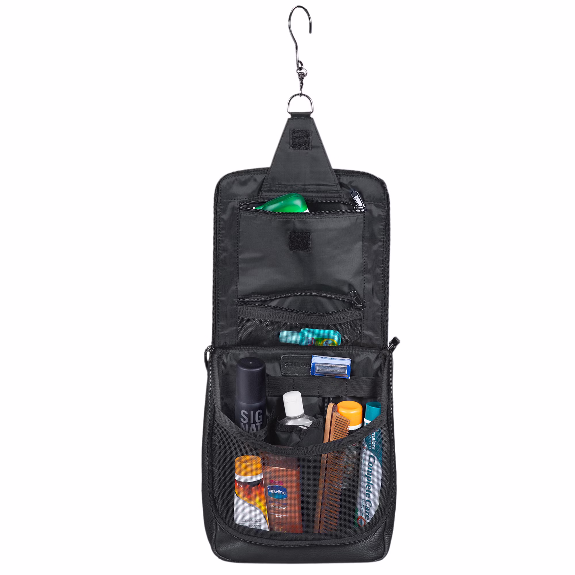 Levi est une trousse en cuir particulière. Vous pourrez transporter cette trousse simplement et efficacement par sa poignée. Vous pourrez également la suspendre et ainsi économiser du temps lors de son utilisation. Ce produit offre assez d'espaces de rangement pour tout votre nécessaire de salle de bain ou de voyages. Son organisation structurée vous permet de vous y retrouver rapidement et sans problème ! De plus, cette trousse est fabriquée en cuir véritable lui offrant robustesse et durabilité.