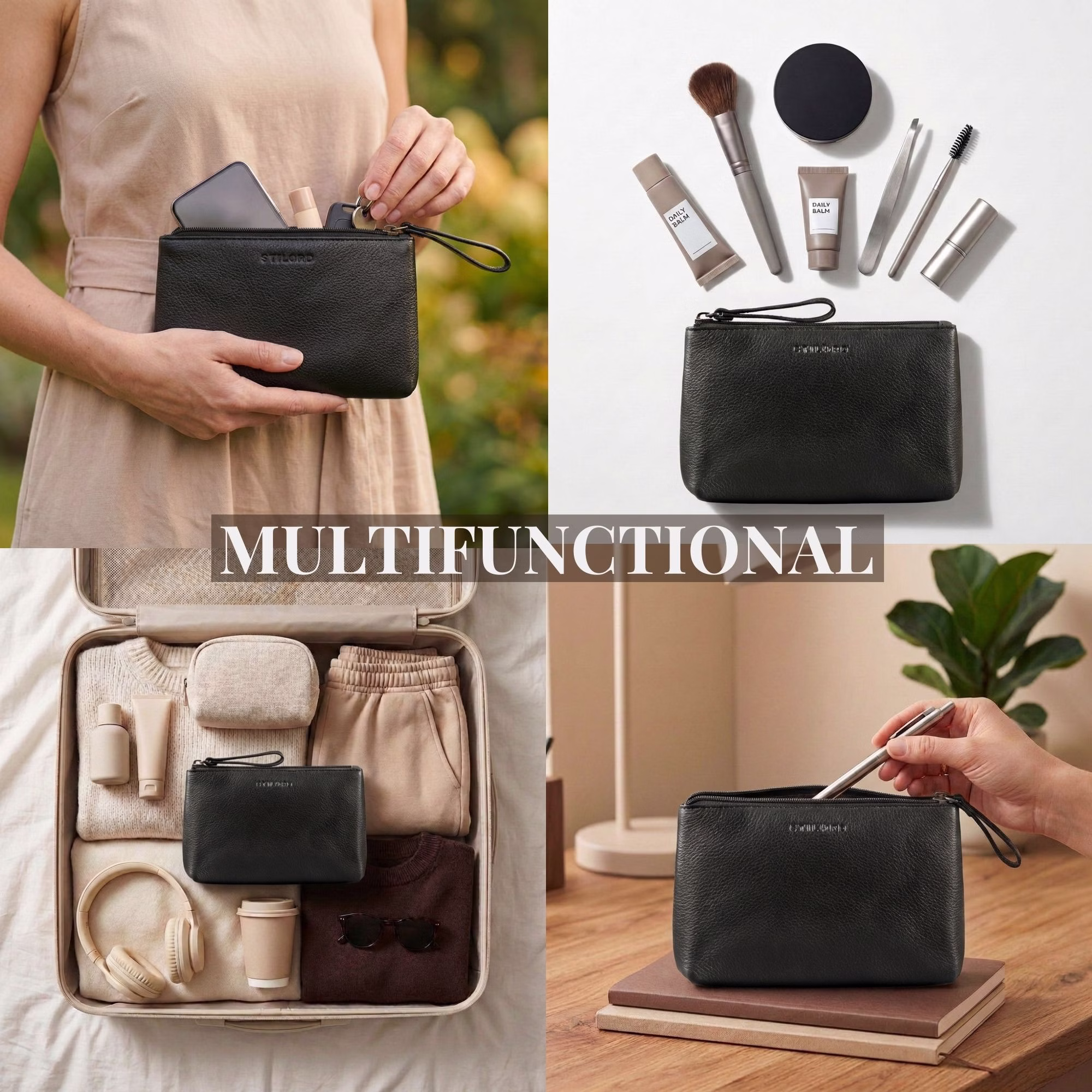 Une organisation qui fait du bien. Qu’elle soit utilisée comme petite trousse cosmétique classique en cuir, étui pour stylos ou rangement pratique pour vos essentiels personnels, cette pochette multifonction en cuir s’adapte avec flexibilité à vos besoins quotidiens.