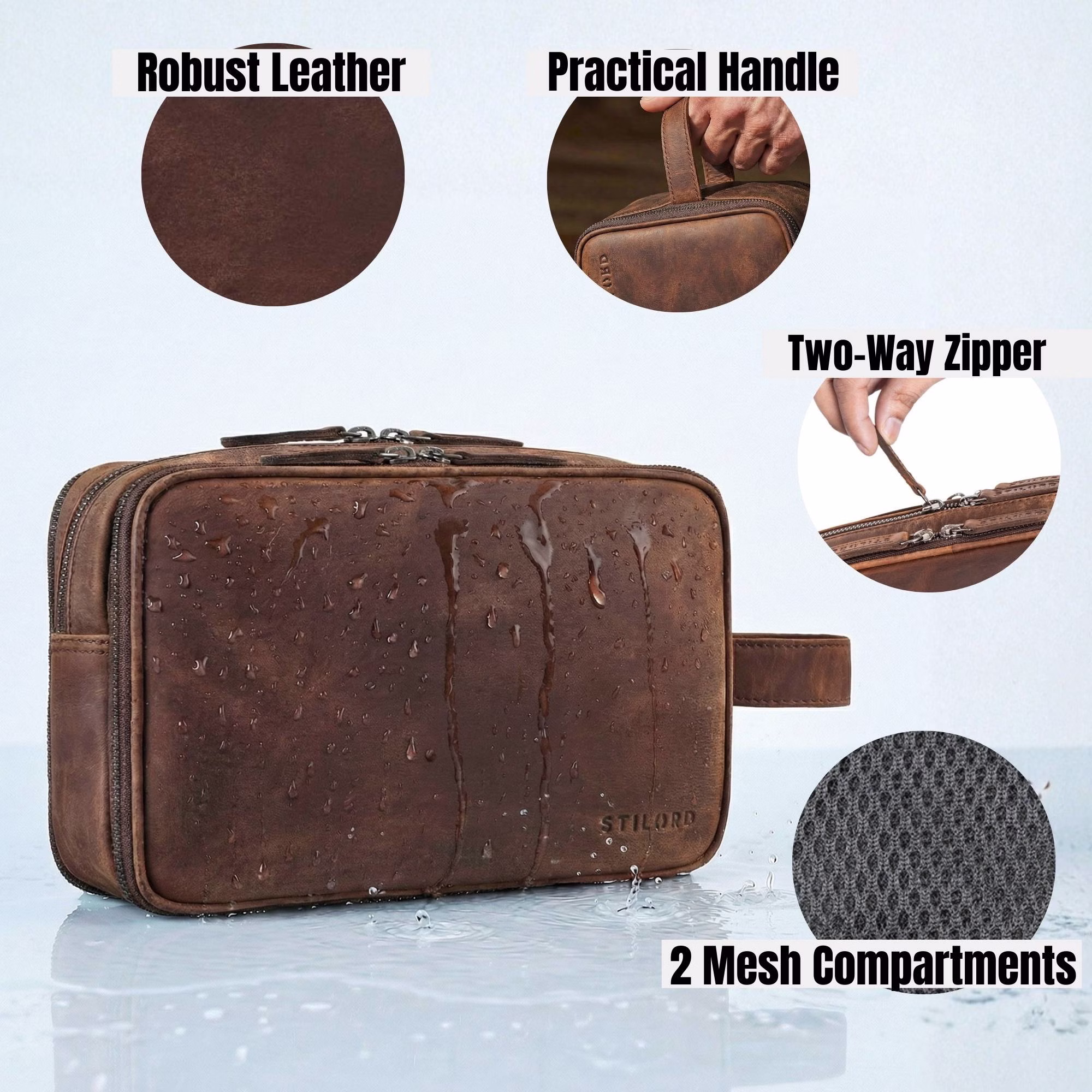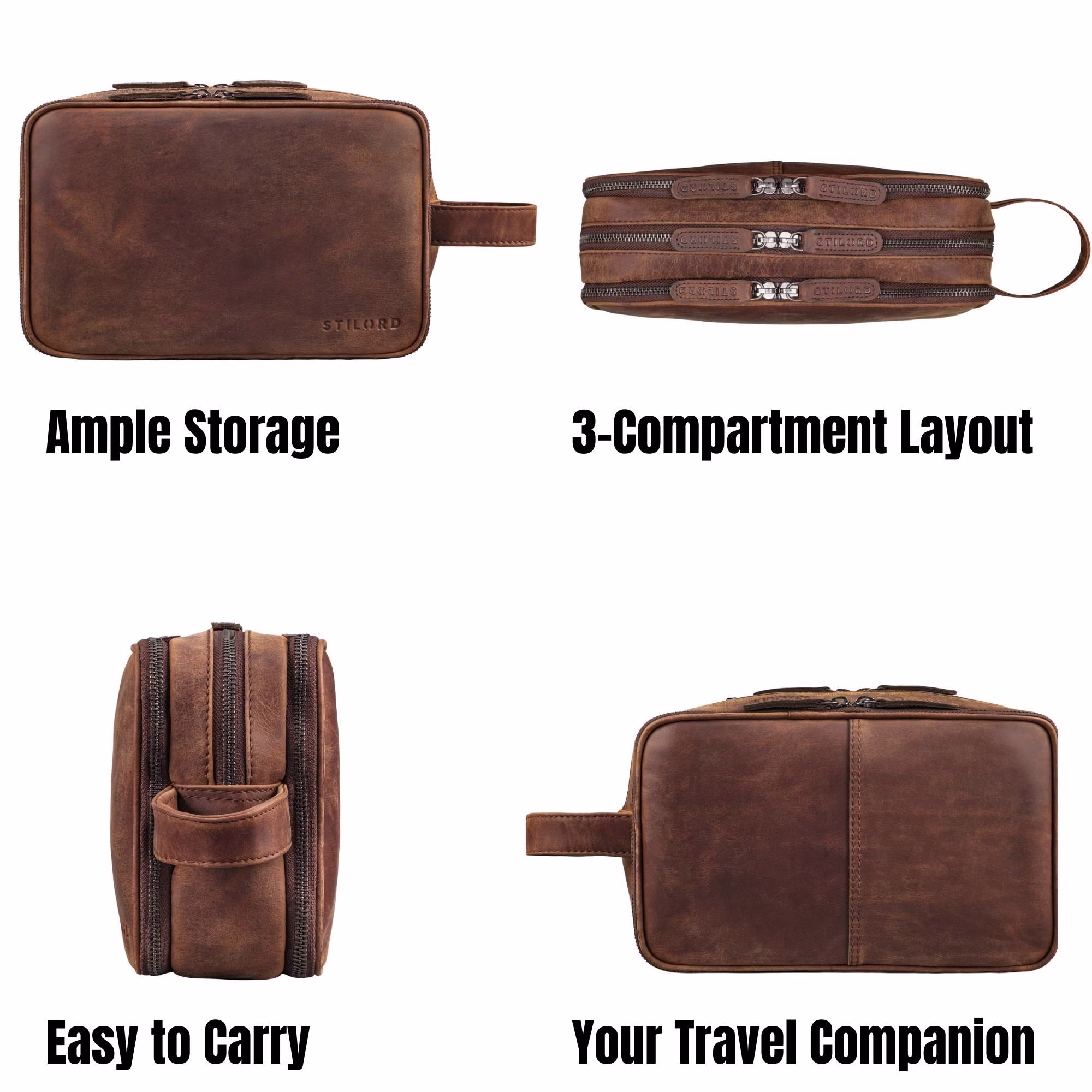- DÉTAILS: Poids: 530 g | Modèle: "Catania" | Matériau: Cuir de vache | Marque: STILORD | Compatibilité: Produits d'hygiène, soins, maquillage, accessoires